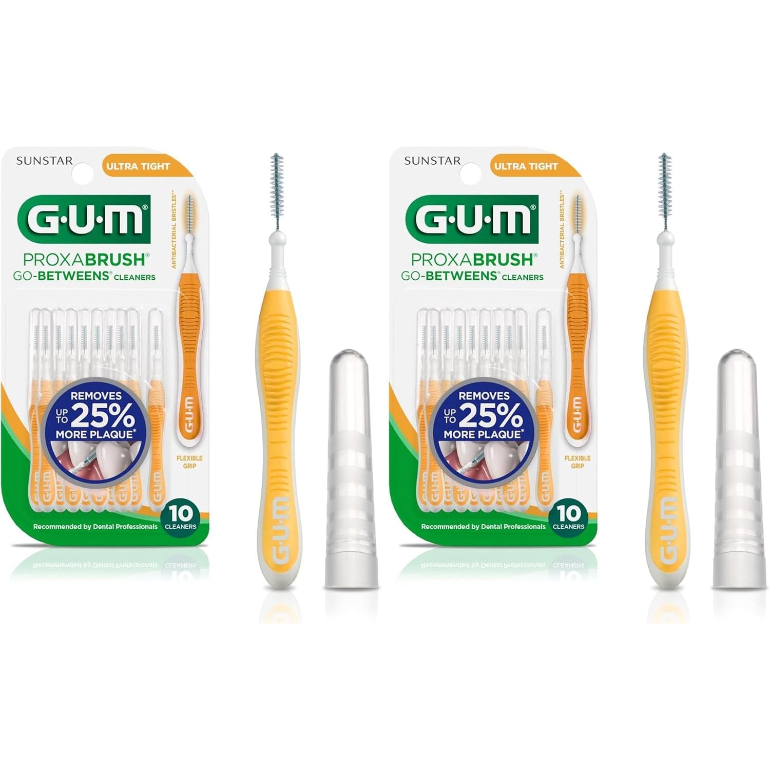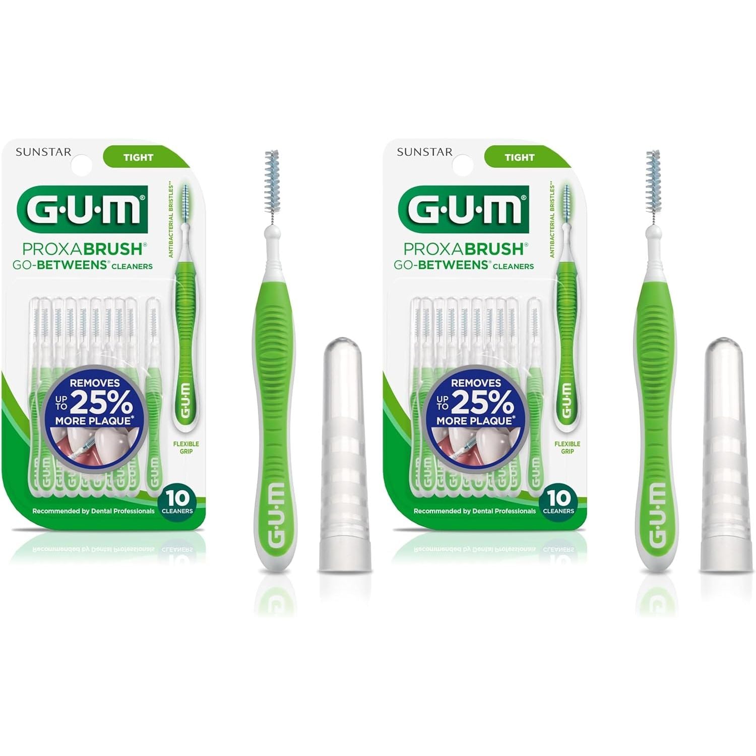 GUM Proxabrush Go-Betweens - Tight - Interdental Brushes - Soft Bristled Dental Picks for Plaque Removal Health - Safe for Braces & Dental Devices, 10ct