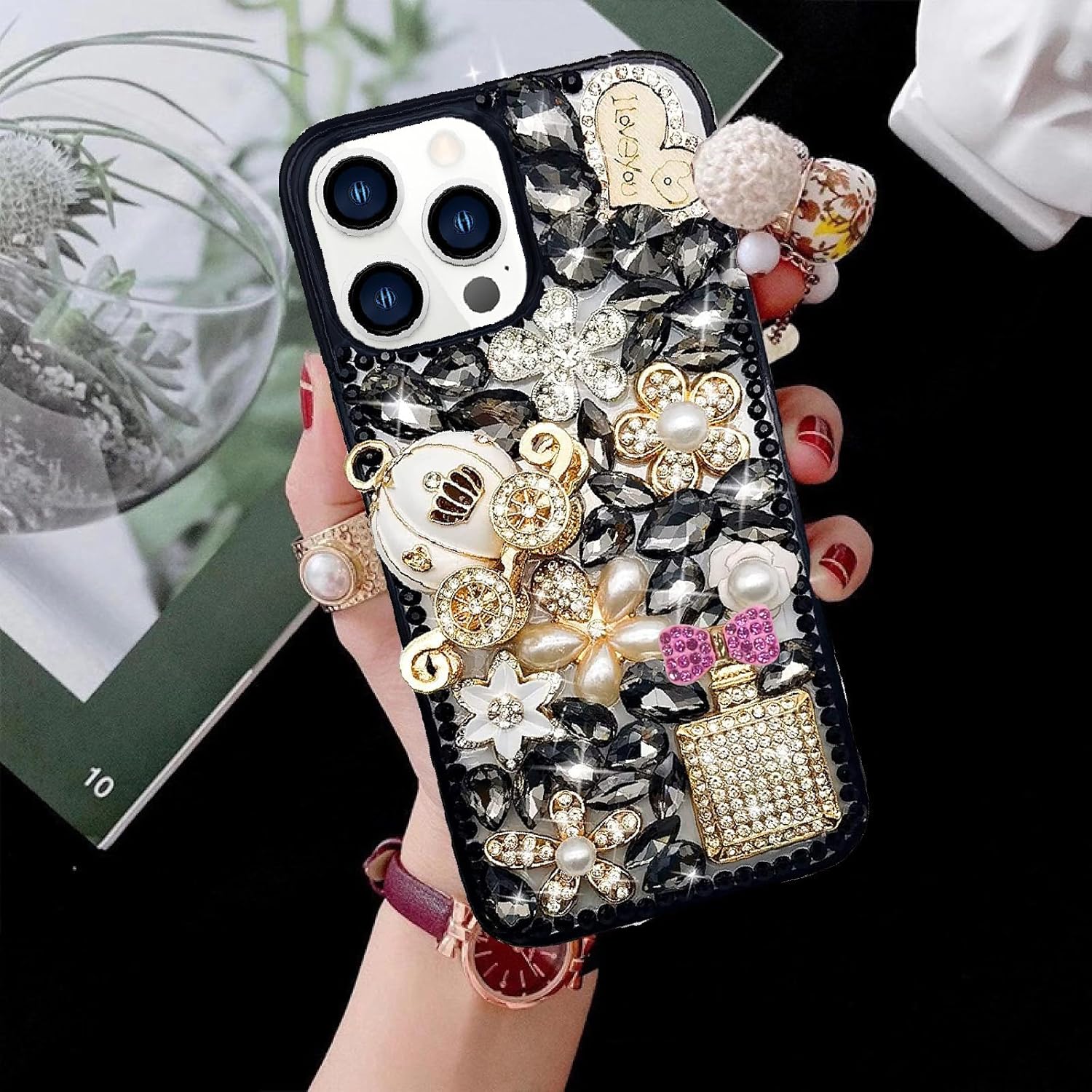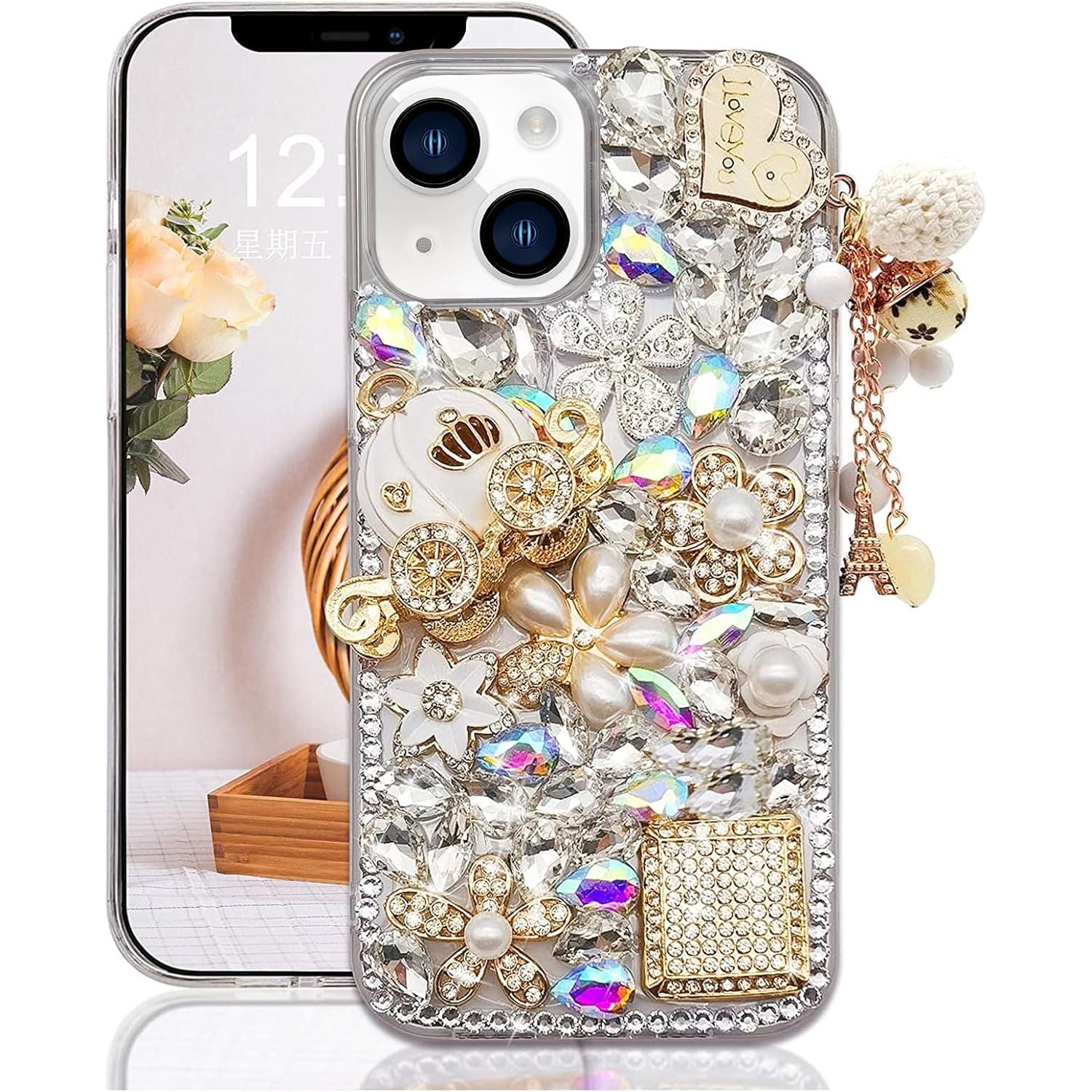 - ♥️Material: Made of lightweight TPU material, the decorations of the phone case are all hand-pasted, and each diamond can be fixed for a long time. This thin and light case fits tightly to your iPhone for easier installation.