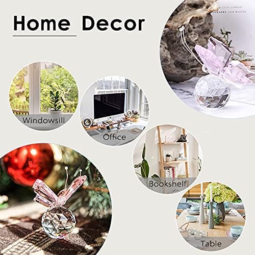 - H&D HYALINE & DORA Pink Crystal Flying Butterfly with Crystal Ball Base Figurine Collection Cut Glass Ornament Statue Animal Collectible