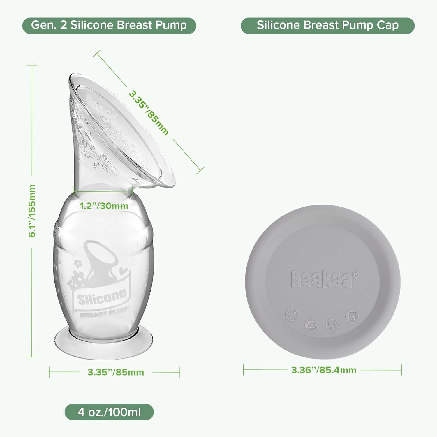 | additional product features | Durable and can be pulled and twisted, Lightweight,Portable,Made from premium food grade silicone, Recommended by nursing moms, magazines, celebrities, doulas and lactation consultants, The suction base ensures that your pump will not fall over, Upgraded Silicone Cap fits all three generations of Haakaa Silicone Breast Pumps |