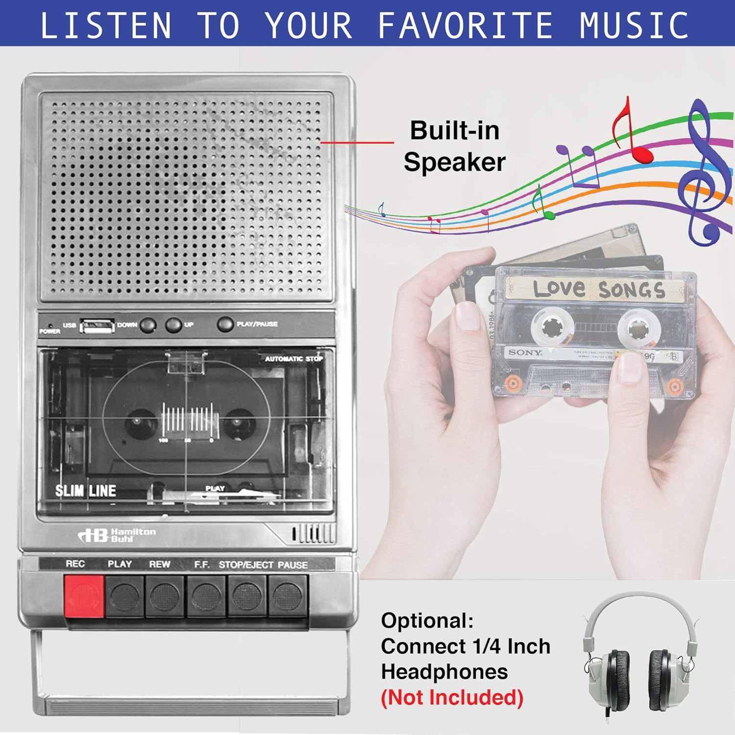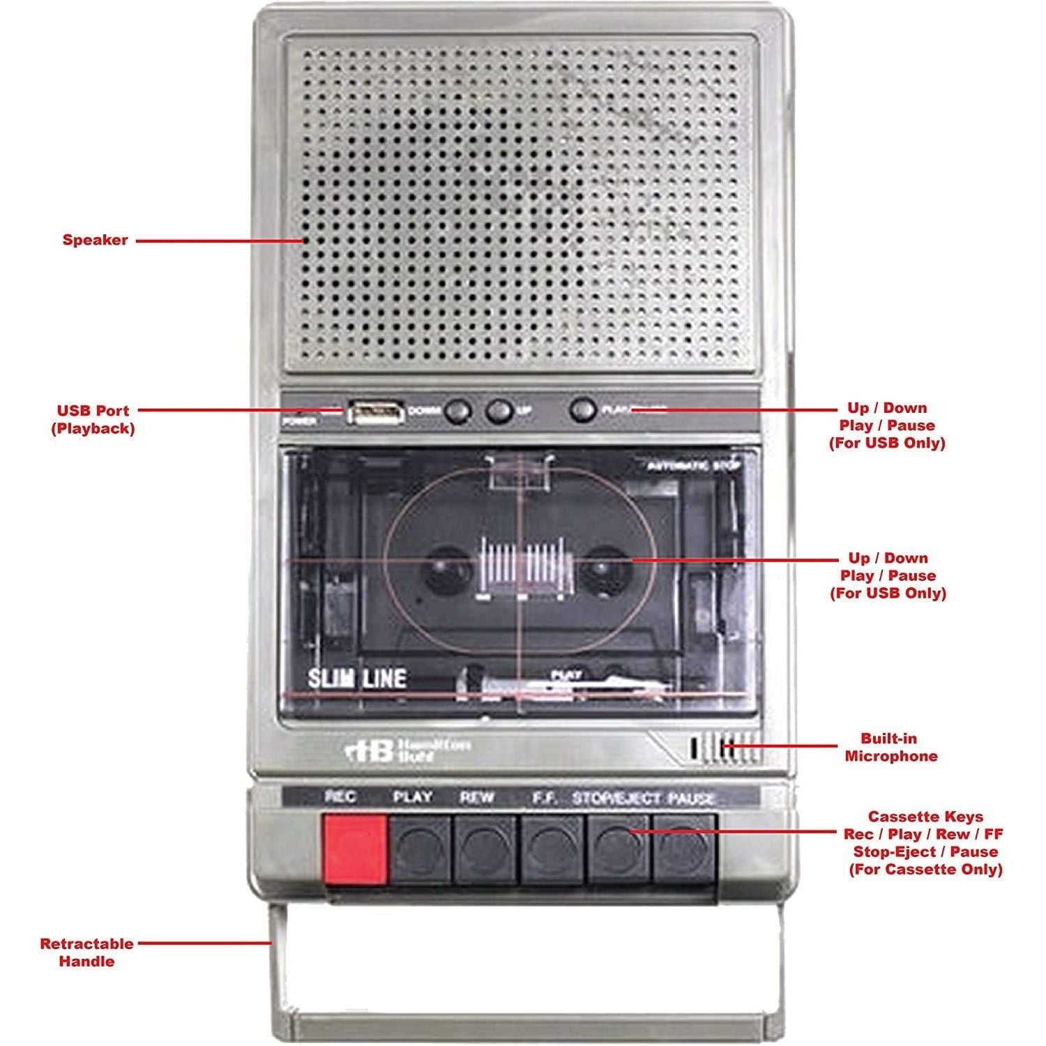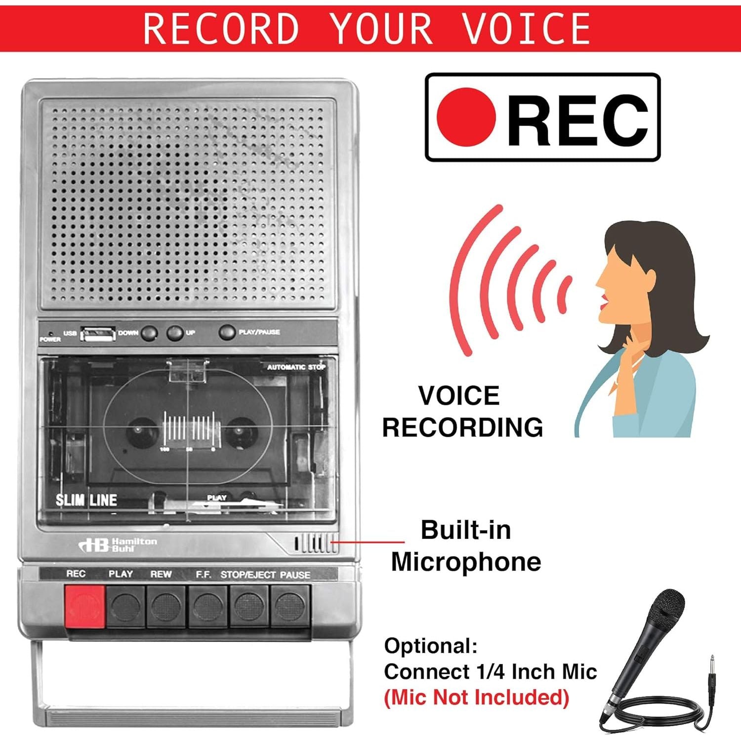 Versatility, performance, reliability and value are what you get from the HamiltonBuhl HA-802 Cassette Player and Recorder. An automatic recording level function ensures steady sound levels, without the need to adjust volume, and a built-in condenser microphone faithfully captures every word and sound. Separate jacks for remote control and external microphone. Two 1/4" headphone jacks and one full watt of power make the HA-802 our most economical listening center. Uses 4 C batteries (not included), or attached 5’ 120-volt AC cord (with cord storage compartment). UL and CSA listed. One-year warranty.