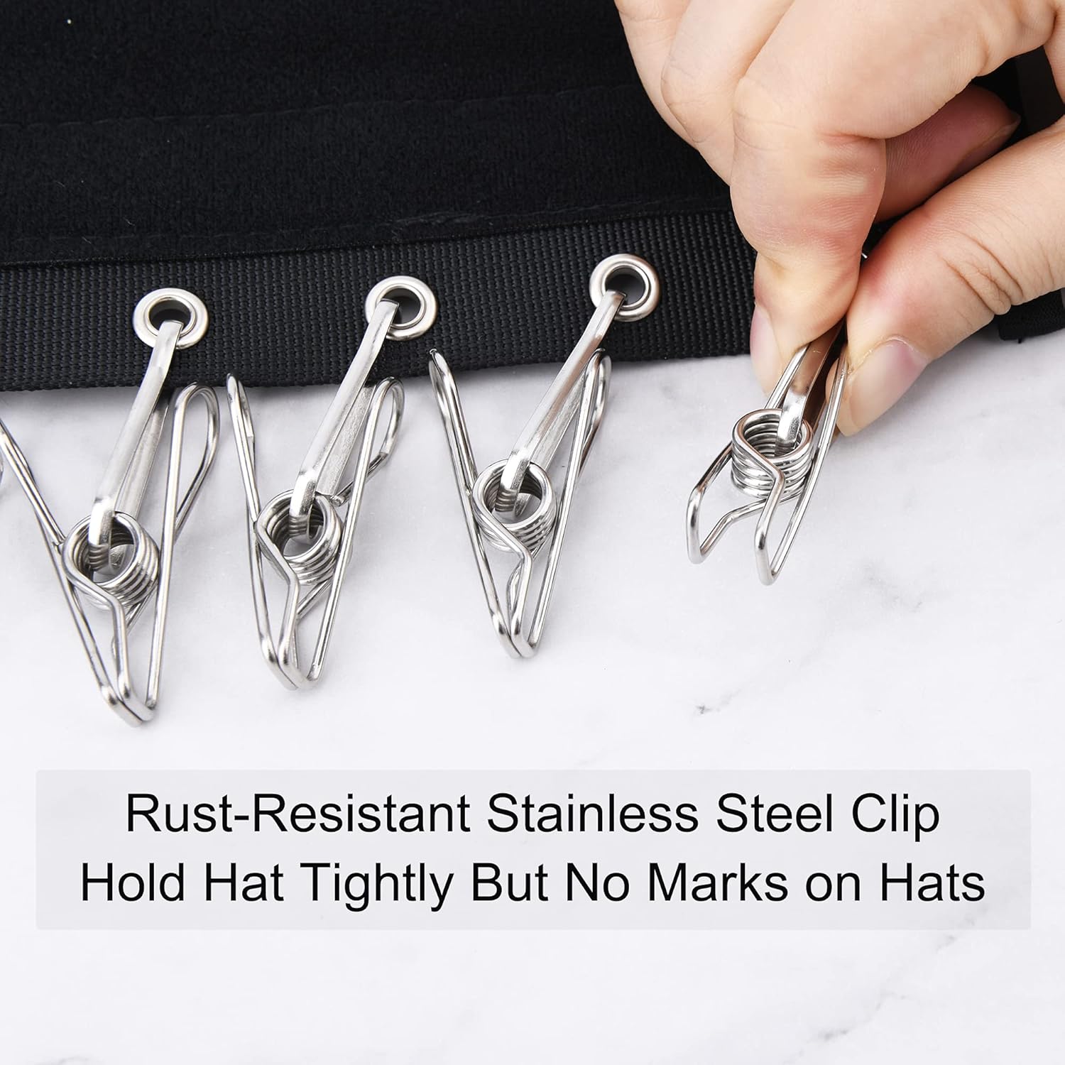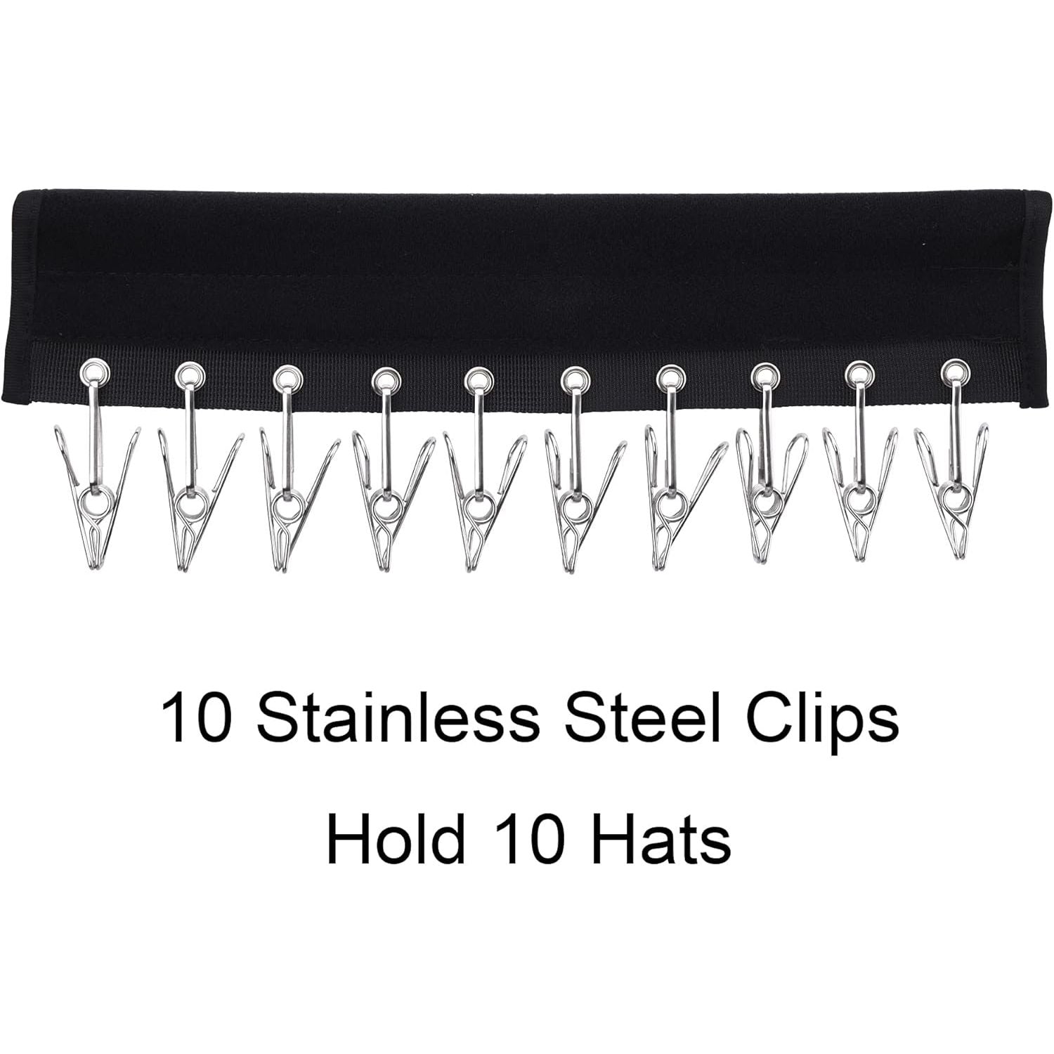 - Durable: The hat organizer is sturdy and well sewn, and the stainless steel clips are strong enough to hold caps but not overly pinch the hat and create marks.