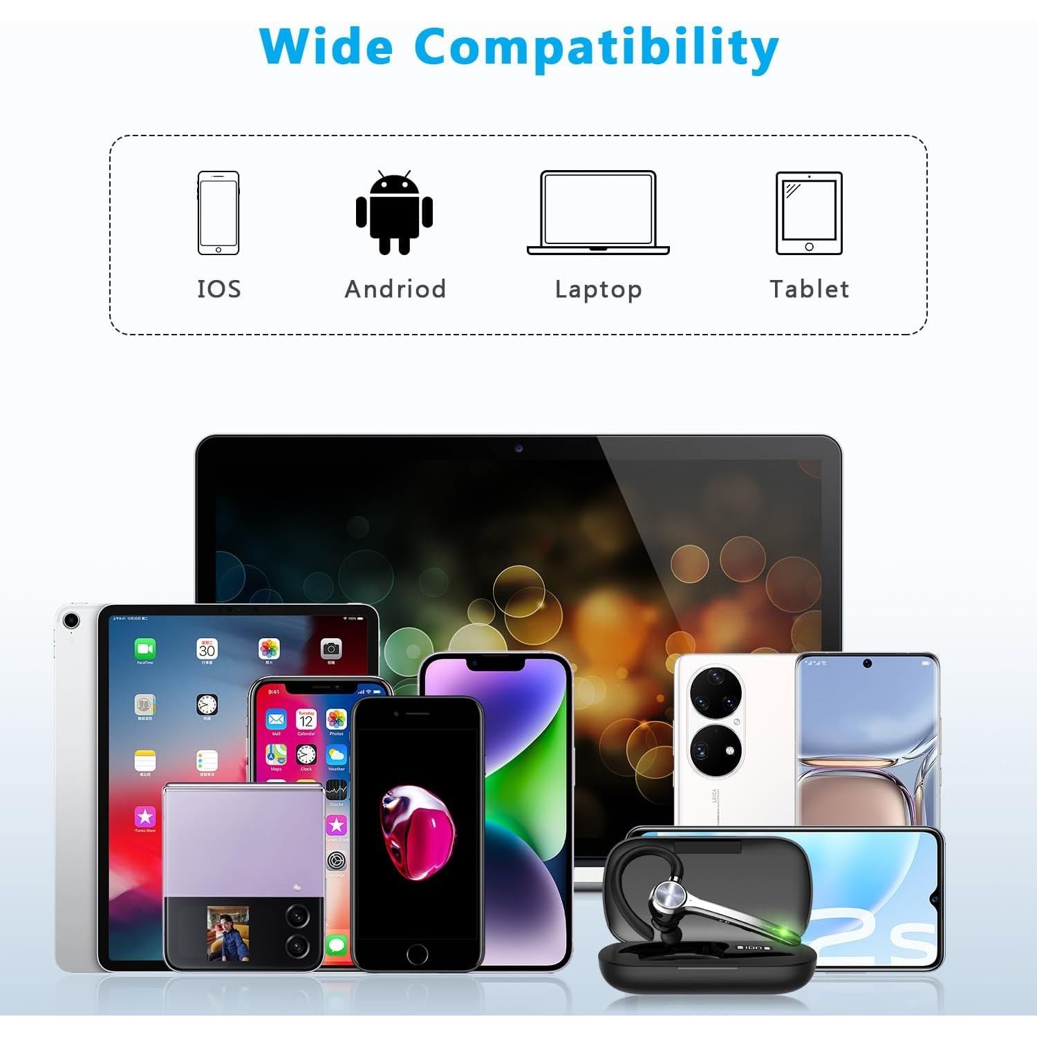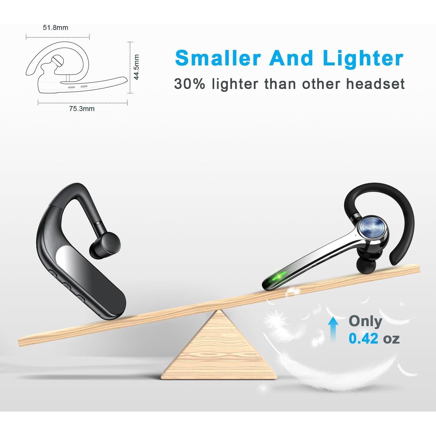 - HEIBAS Bluetooth Headset, Wireless Bluetooth Earpiece with 500mAh Charging Case 72 Hours Talking Time Built-in Microphone for iOS Android Cell Phone, V5.1 Hand-Free Headphones for Trucker, Office