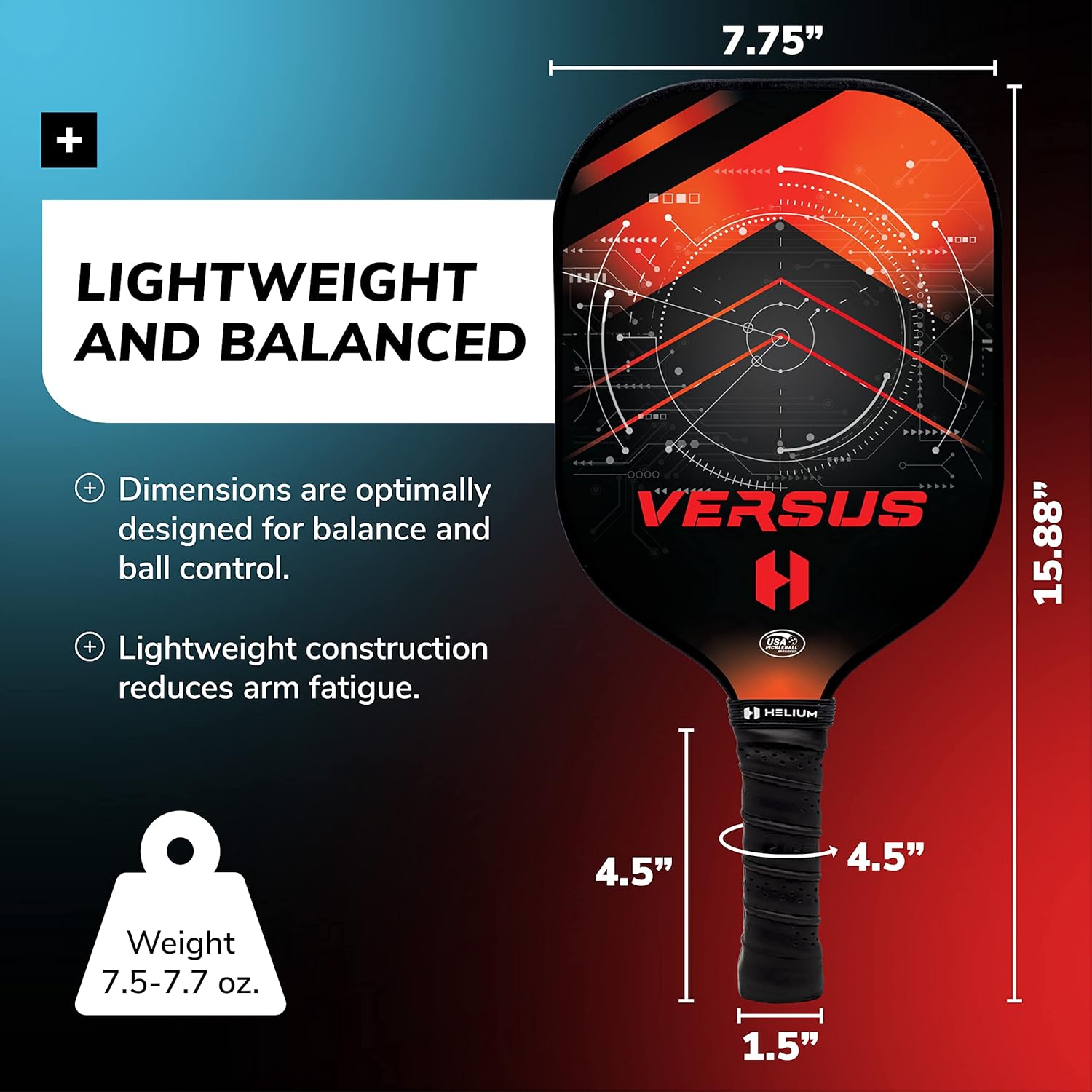 - 【Balanced Paddle, Premium Construction】 Each Versus pickleball paddle is made with a fiberglass face which generates more control and power in each swing. The polypropylene honeycomb core makes the paddle light. Strike the optimal balance of power and control with the dynamic Versus pickleball paddle.
