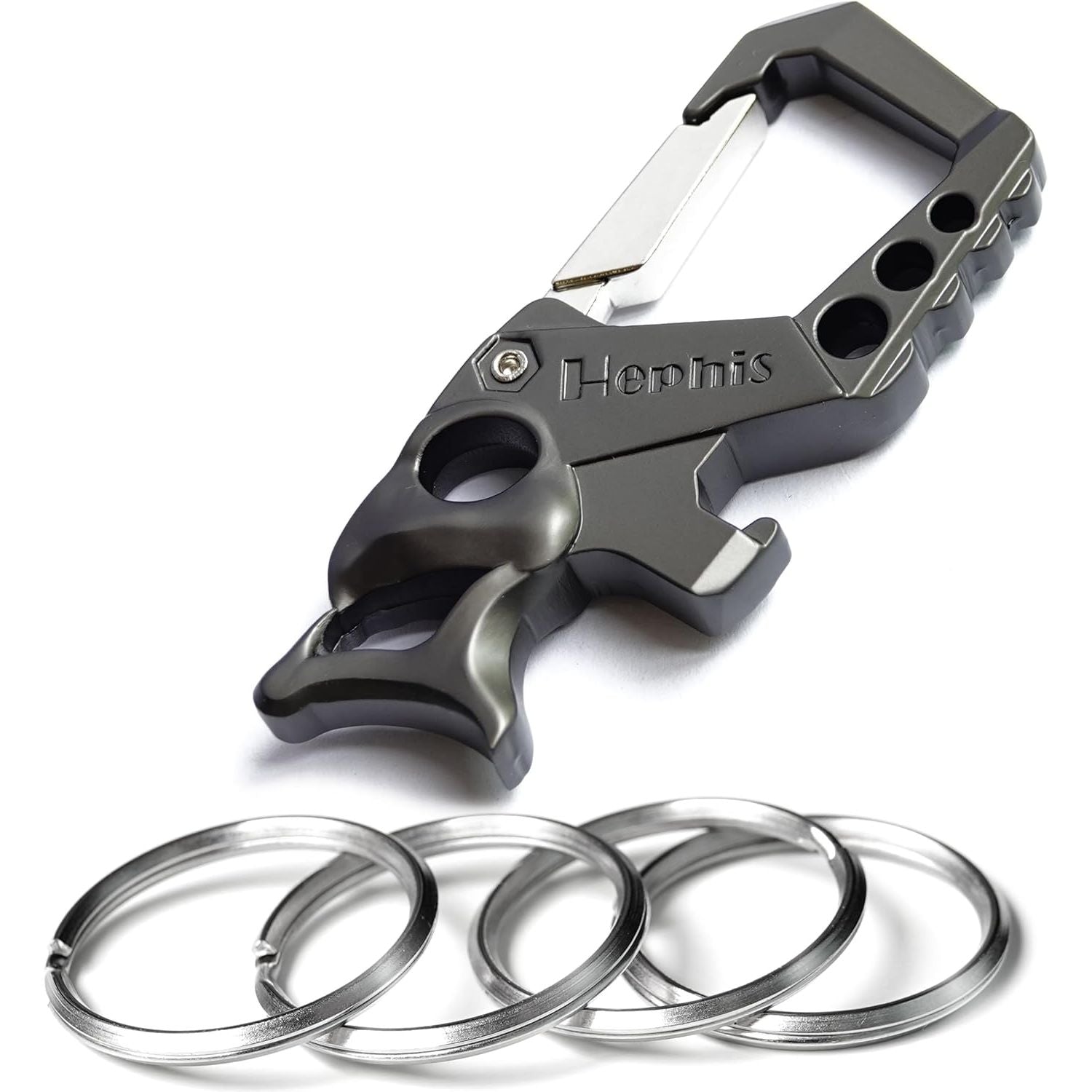 - Hephis Skull Heavy Duty Key Chain,Car Emergency Escape Tool, Seat belt Cutter,Bottle Opener,Carabiner Car Key Chains