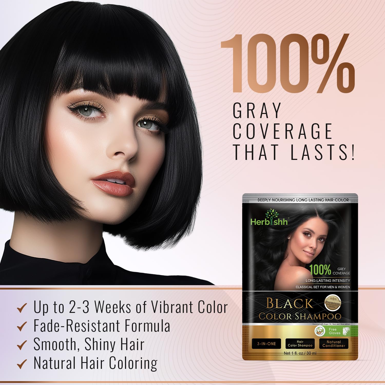 - LONG LASTING GREY COVERAGE – Give your greying hair a new lustrous, vibrant, and young look, while replenishing the lost health of weak strands with Herbishh Hair Color Shampoo for Grey Hair. With a special combination of active botanicals, our hair color shampoo dye is sure to give your hair a deep black color that will last up to 2 to 3 weeks.