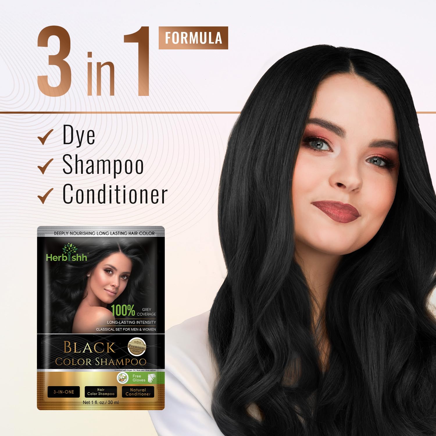 - Herbishh Natural Hair Dye Shampoo with Argan Mask - Long-Lasting Color for Gray Hair - Travel Size, 10+1 Pack, Ammonia-Free (Black)