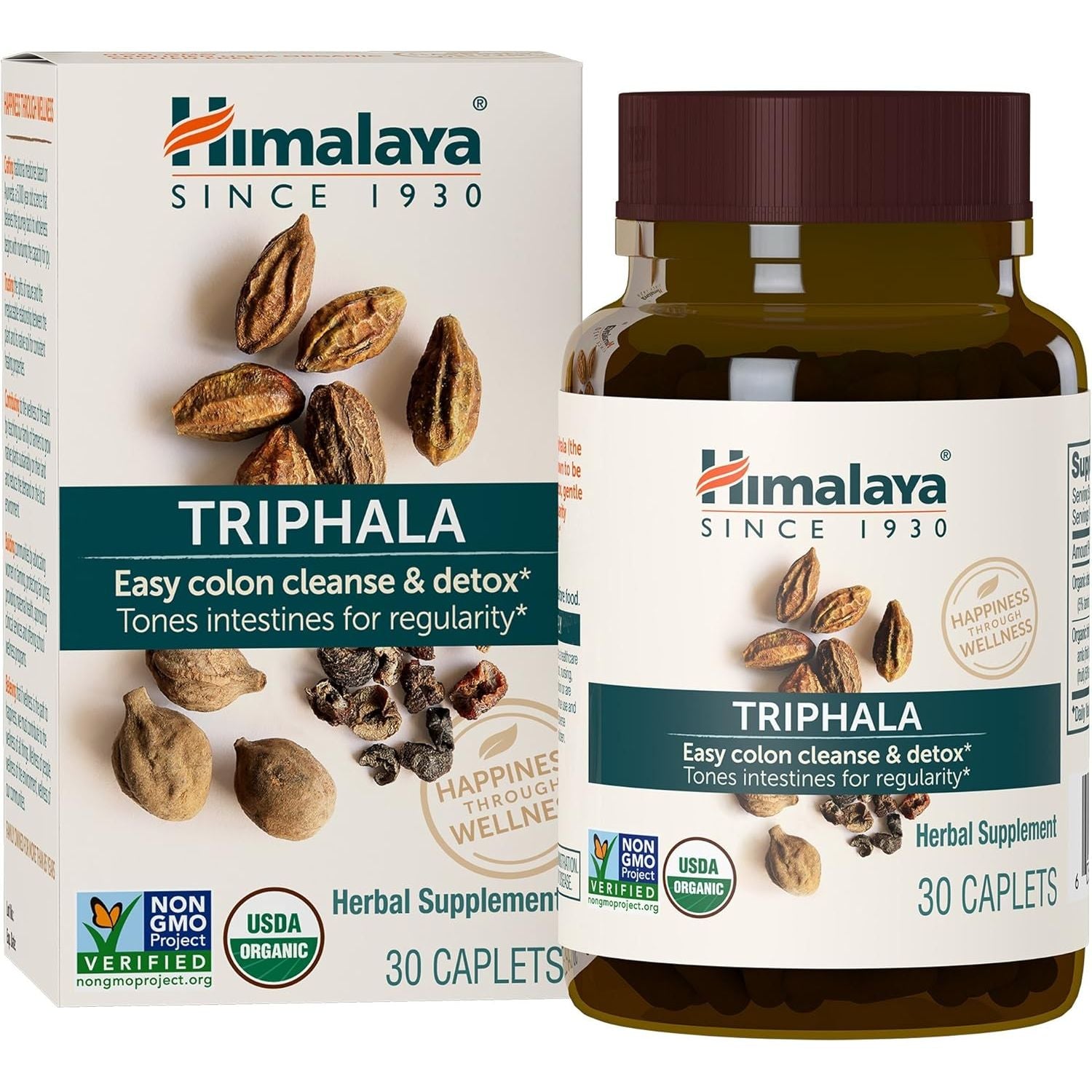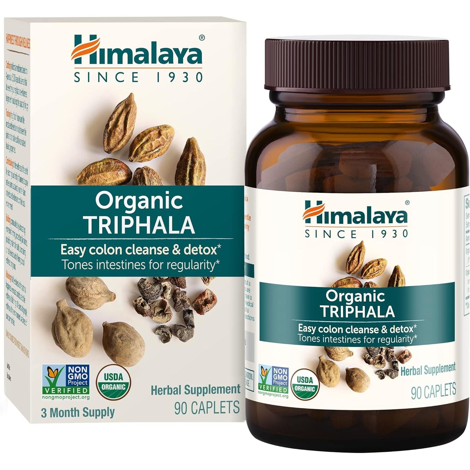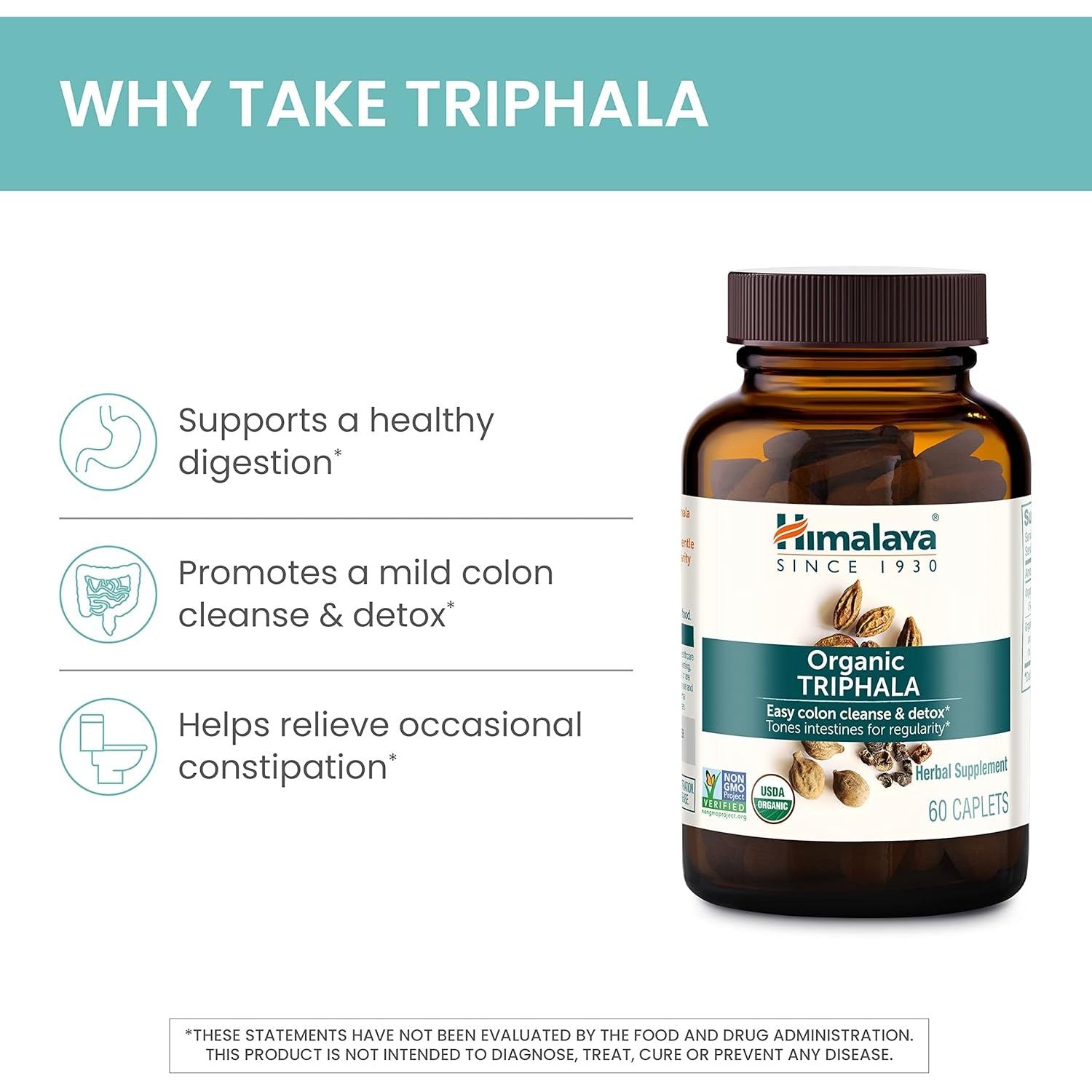- Himalaya Organic Triphala, 2 Month Supply, for Colon Cleanse, Detox & Occasional Constipation, USDA Certified Organic, Non-GMO, Gluten-Free, Extract & Powder Herbal Supplement, 688 mg, 60 Caplets