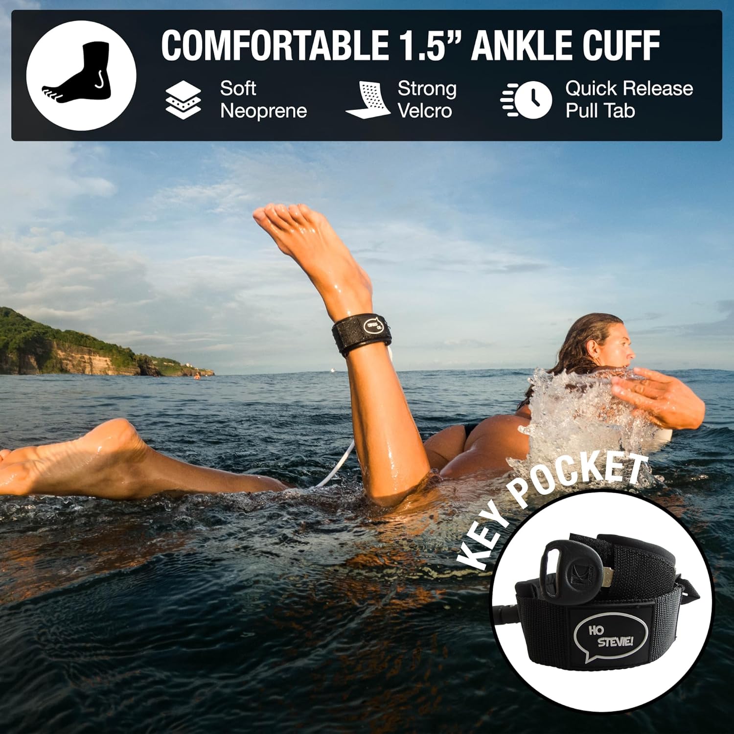 - Ho Stevie! Premium Surf Leash - No Tangles, No Lost Surfboard - Hi-Strength Lightweight 1/4" Cord - Feels Like Surfing Leashless - 6/7/8/9 Feet