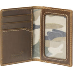 - CARD CASE FEATURES: Slim bifold wallet construction offers a combined carry of 7 credit card slots - 2 Exterior Card Slots, 3 Interior Card Slots, 1 Interior Receipt/Cash Pocket and 1 Interior ID Window. The Interior ID Window features a thumbhole cut-out for ease of license removal as well as camouflage menswear lining. This wallet is favorited for its small size and efficient layout for frequented cards. Slim and multi-functional!