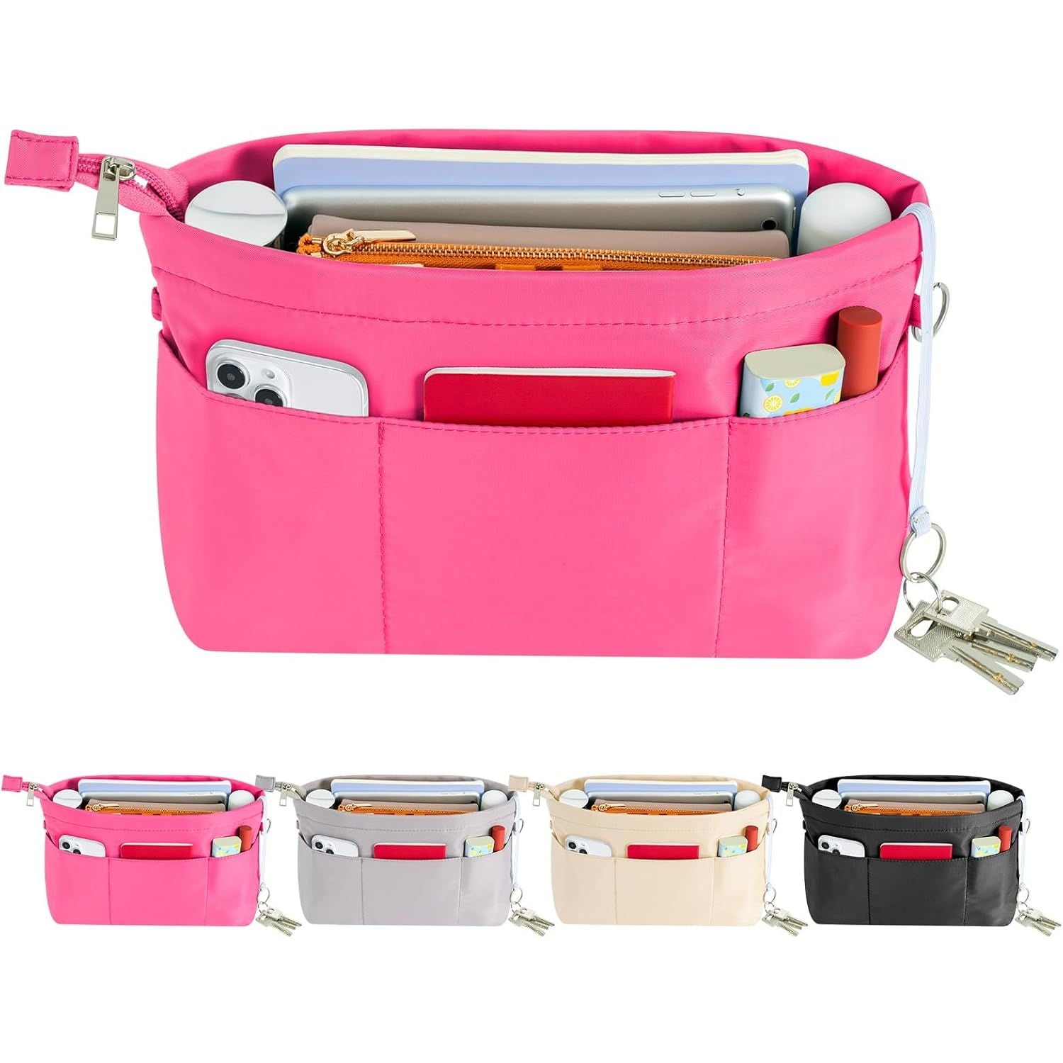 - HyFanStr Purse Organizer Insert with Zipped Top for Tote Bag, Handbag Shaper with 13 Pockets