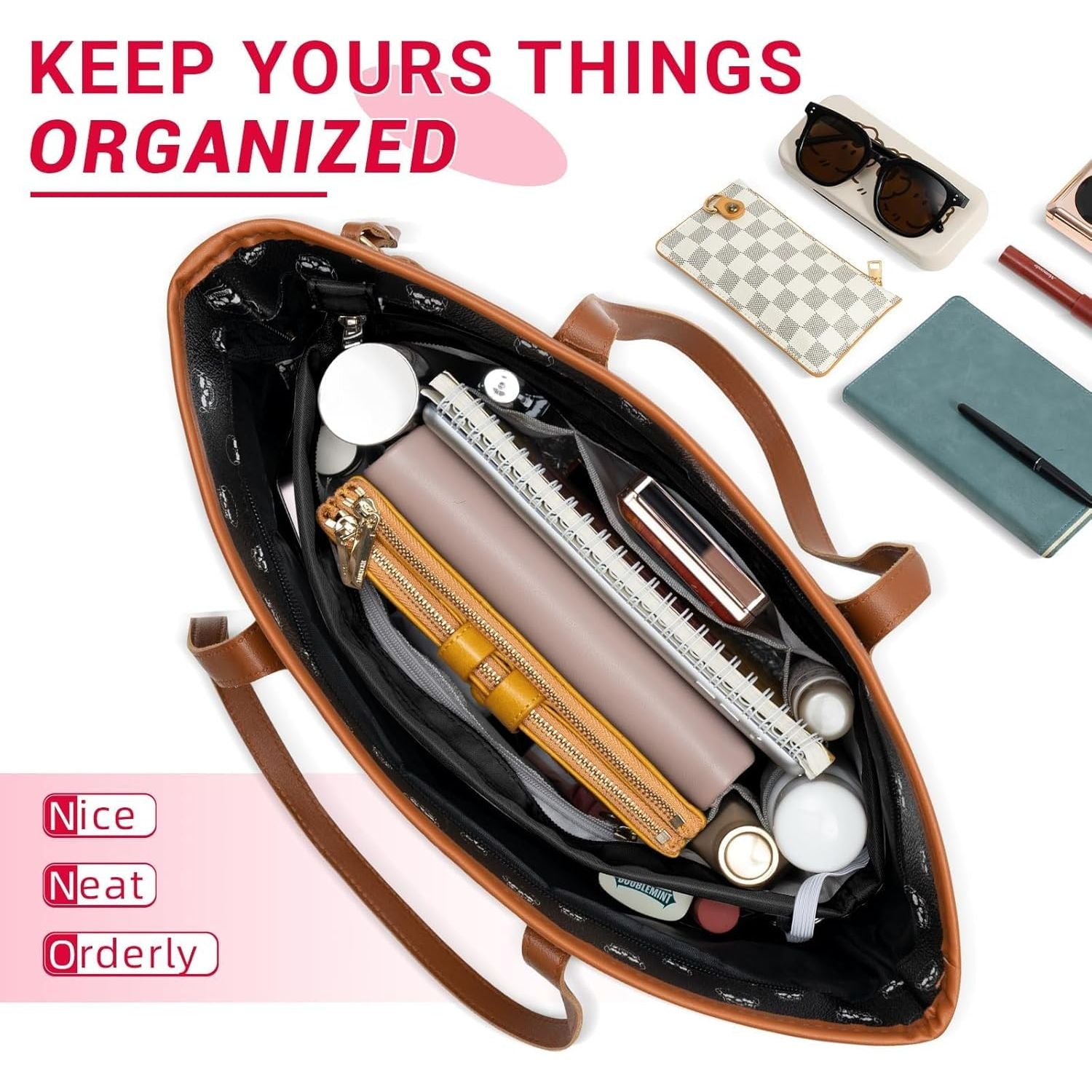 - 【13 Pockets】Manage all cosmetics, glasses case, phone, umbrella, water bottles, keys and other items in place, keep your items well organized and easy find. No more digging at the bottom of the bag!