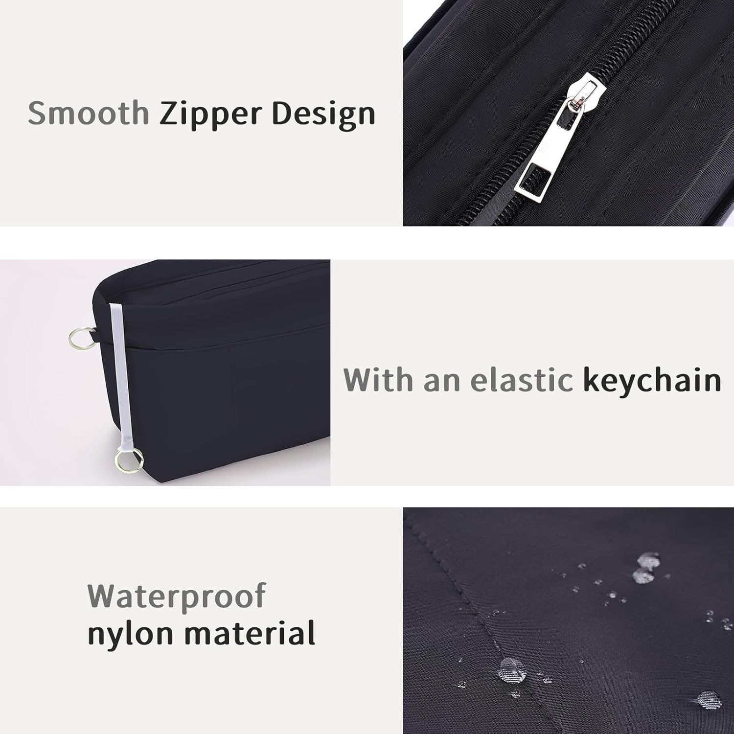 - 【Keychain & Anti-theft Design】Flexible key chain helps you find the key in seconds, the smooth zipper of handbag organizer prevents your valuables from falling out or being stolen.