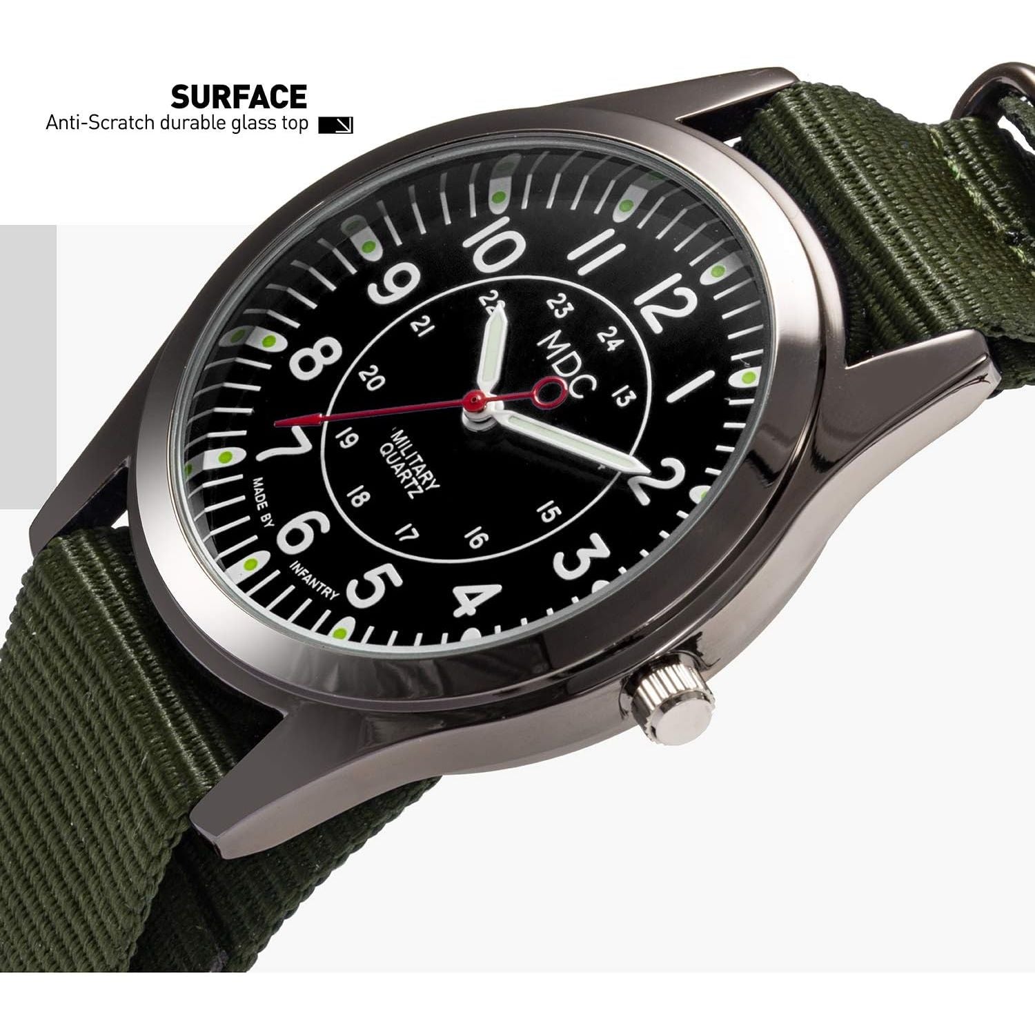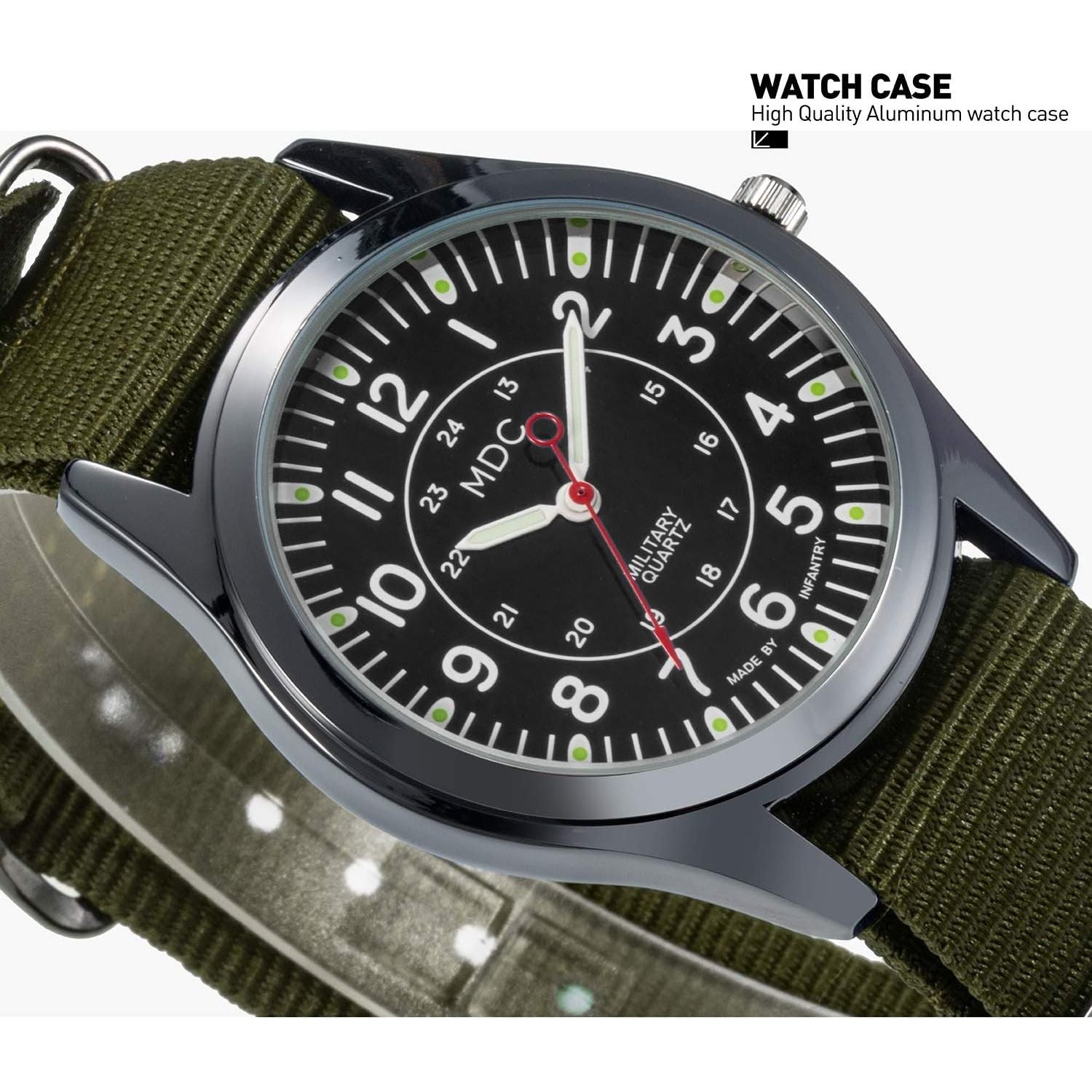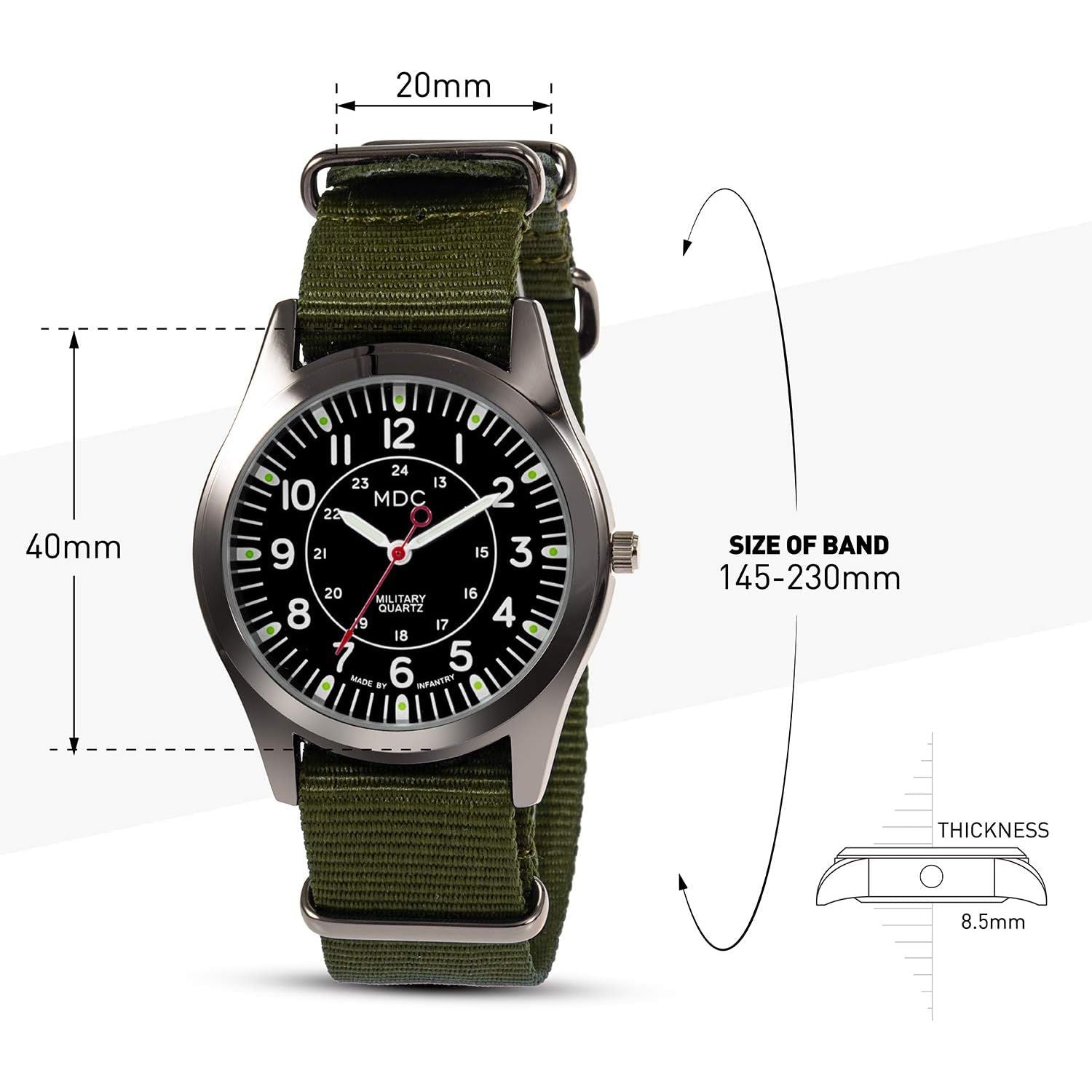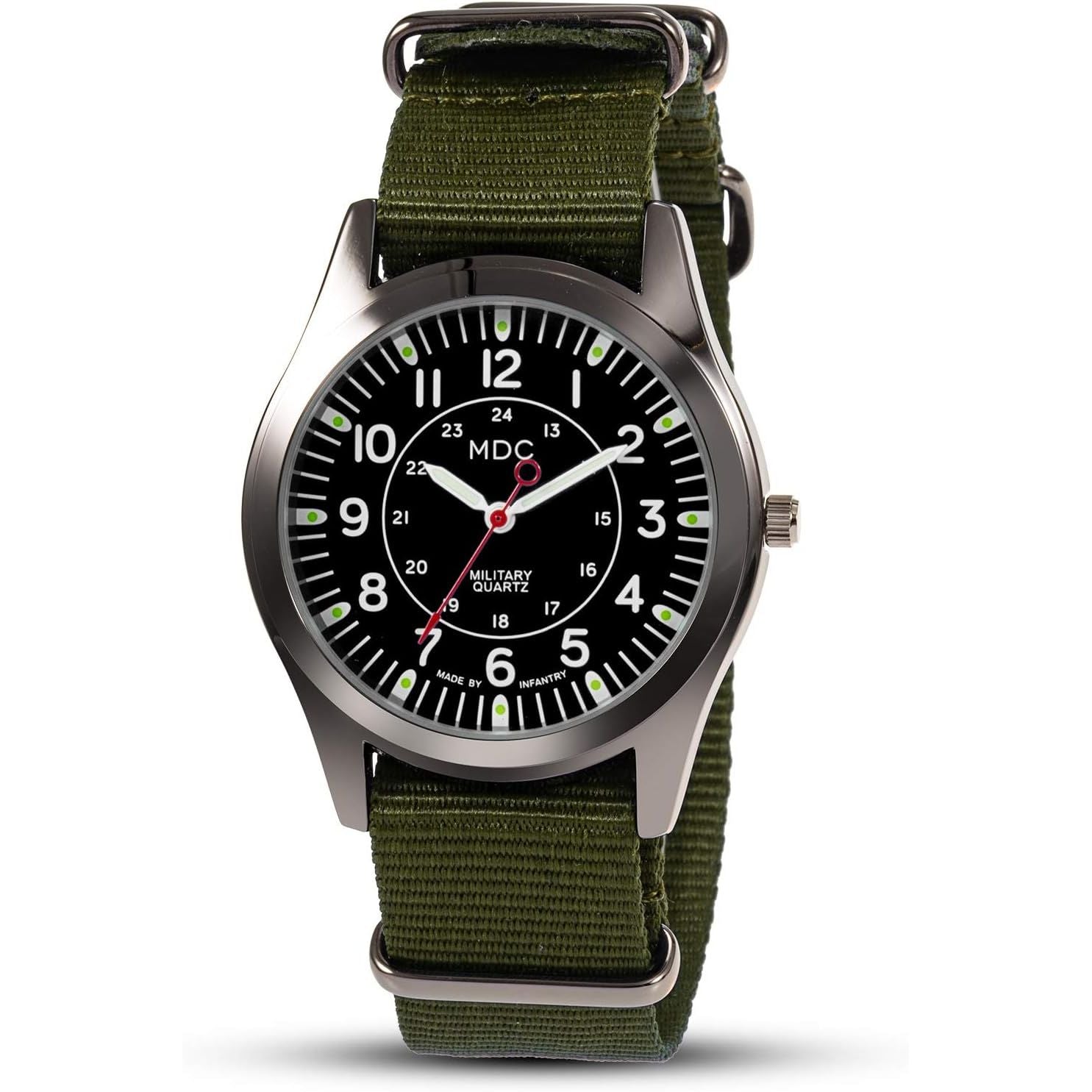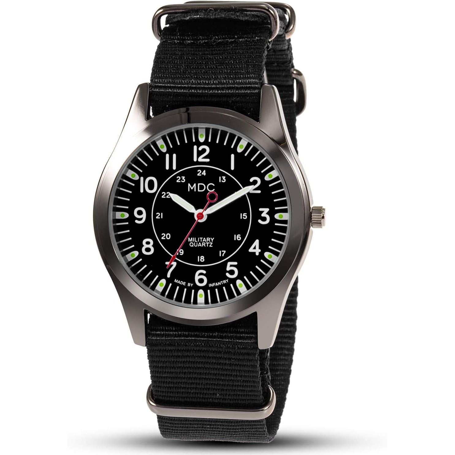 - Infantry MDC Mens Analog Watch, 12/24 Hour Military Wrist Watches for Men Tactical, Army Field Wristwatch with Slip-Thru Nylon Band