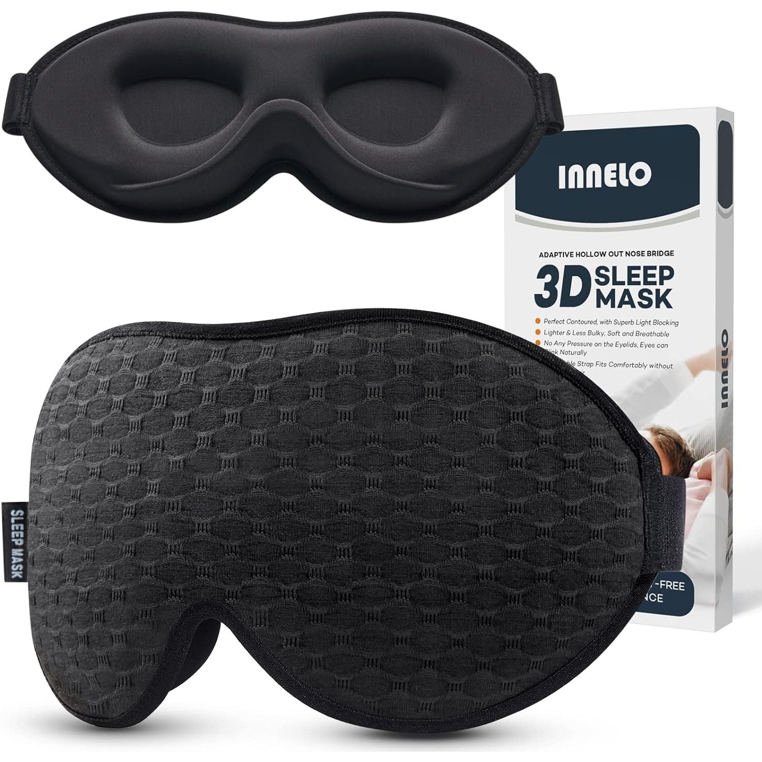 - INNELO 3D Contoured Sleep Mask for Side Sleepers, 100% Light Blocking Sleeping Mask for Men & Women, Soft, No Pressure on Eyes, Airplane Blindfold for Travel, Night Eye Cover for Nap, Yoga, Grey