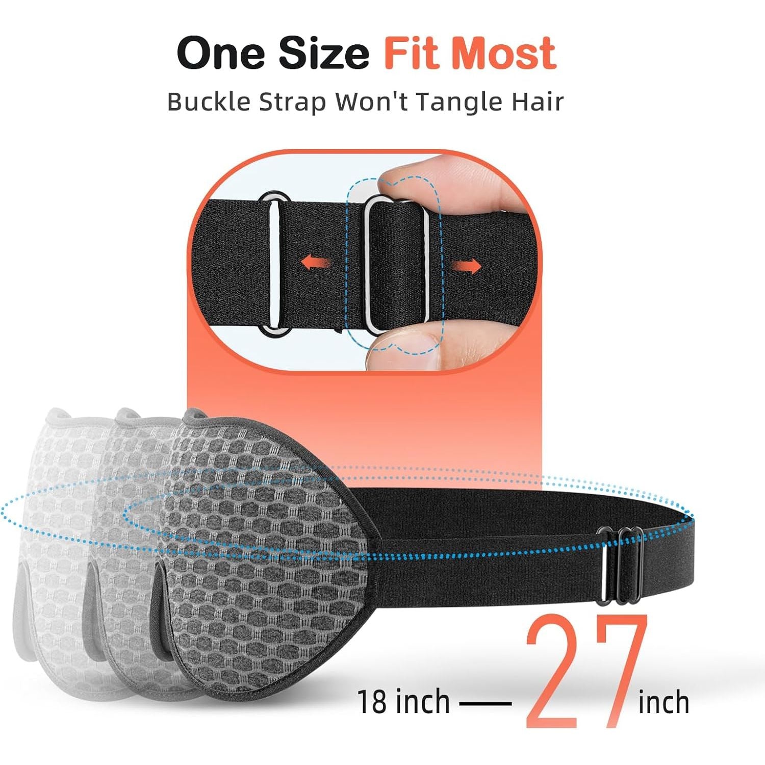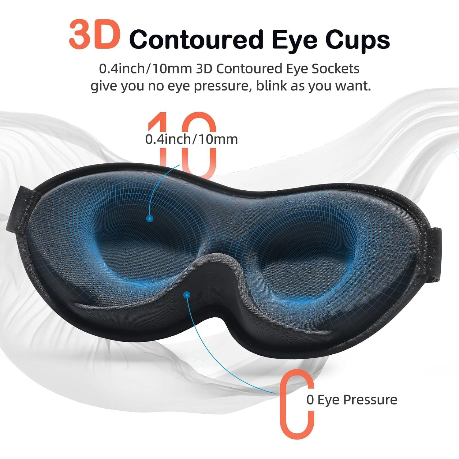 - [ No Eye Pressure ] Many people suffer from pressure when sleeping with eye covers. Our blindfold with 0.4inch/10mm 3D contoured cup eye sockets has deeper space so that it has no eye pressure, won't touch the eyelashes and you can blink as you want