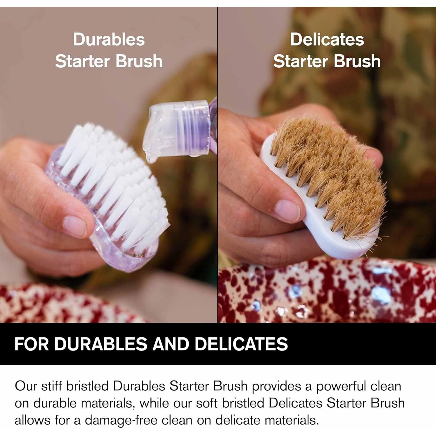 - DURABLES & DELICATES BRUSHES: Handle your materials with the care they need; use the stiff bristled Durables Starter Brush for a powerful clean on durable materials, or use the soft bristled Delicates Starter Brush for a damage-free clean on delicate materials.