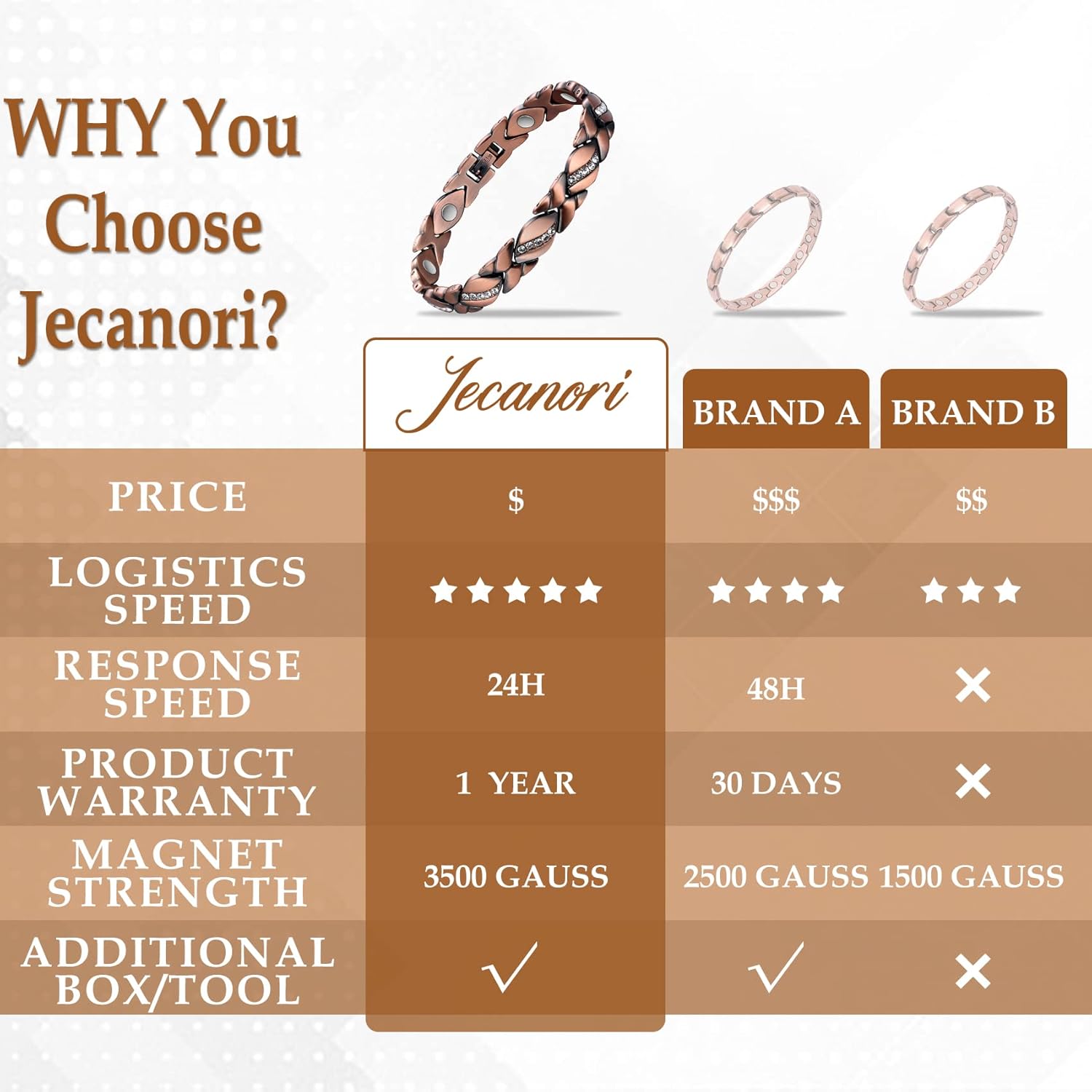 - Jecanori Pure Copper Bracelets for Women,Ultra Magnetic Bracelets for Women with 3500 Gauss Magnets,Crystal Valentine's Day Jewelry Gift, Sizing Tool