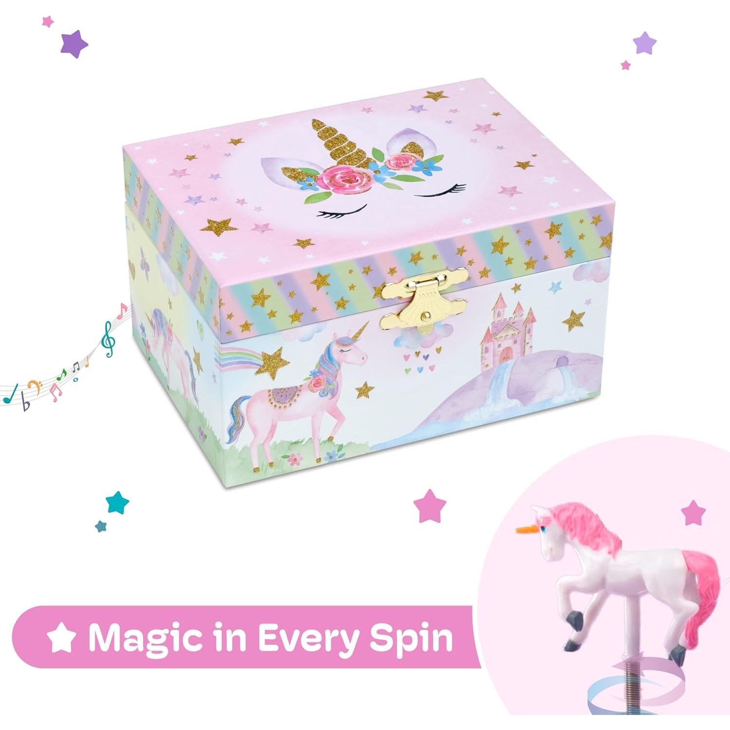 - Jewelkeeper Musical Jewelry Box for Girls with Spinning Unicorn, Glitter Rainbow and Stars Design Music Box for Necklace, Earrings, and Accessories, Plays The Beautiful Dreamer Tune