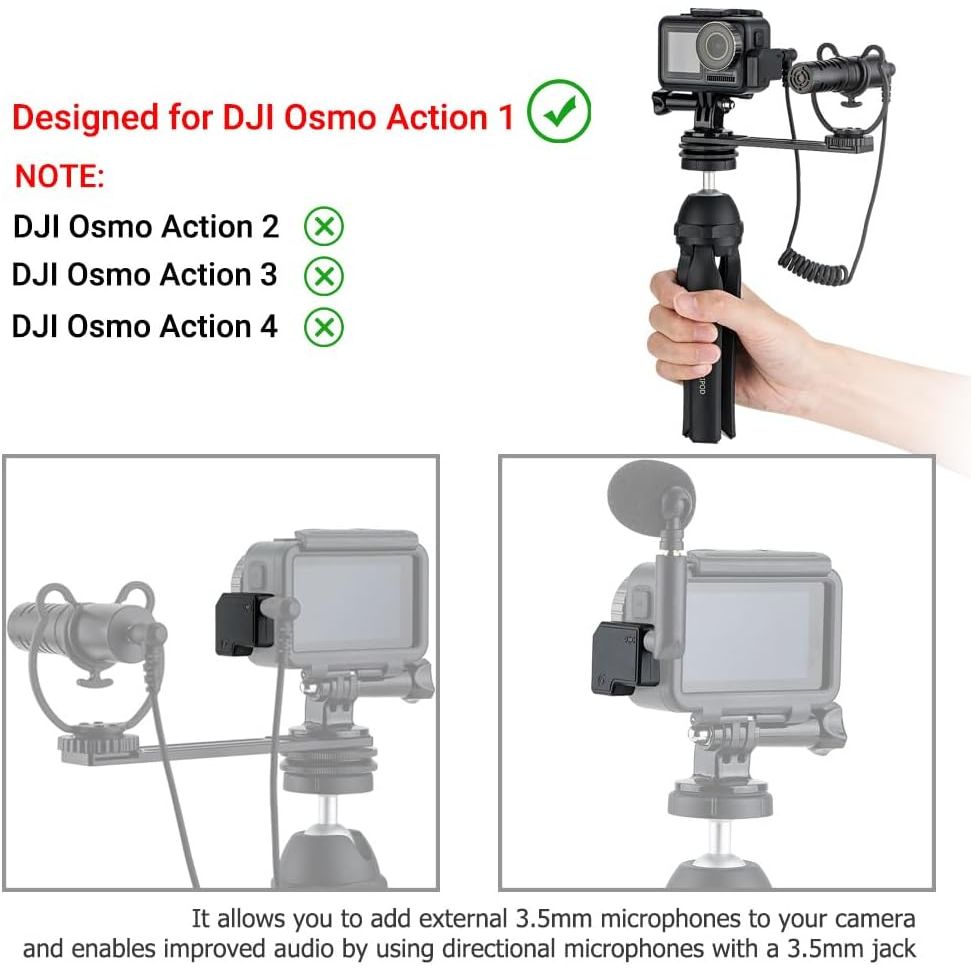 - JJC Dual USB-C 3.5mm Mic Adapter for DJI Osmo Action 1 (Only),Not Compatible with DJI Osmo Action 2 3 4,Audio Adapter Vlogging Accessories for OSMO Action 1 Camera (Only)