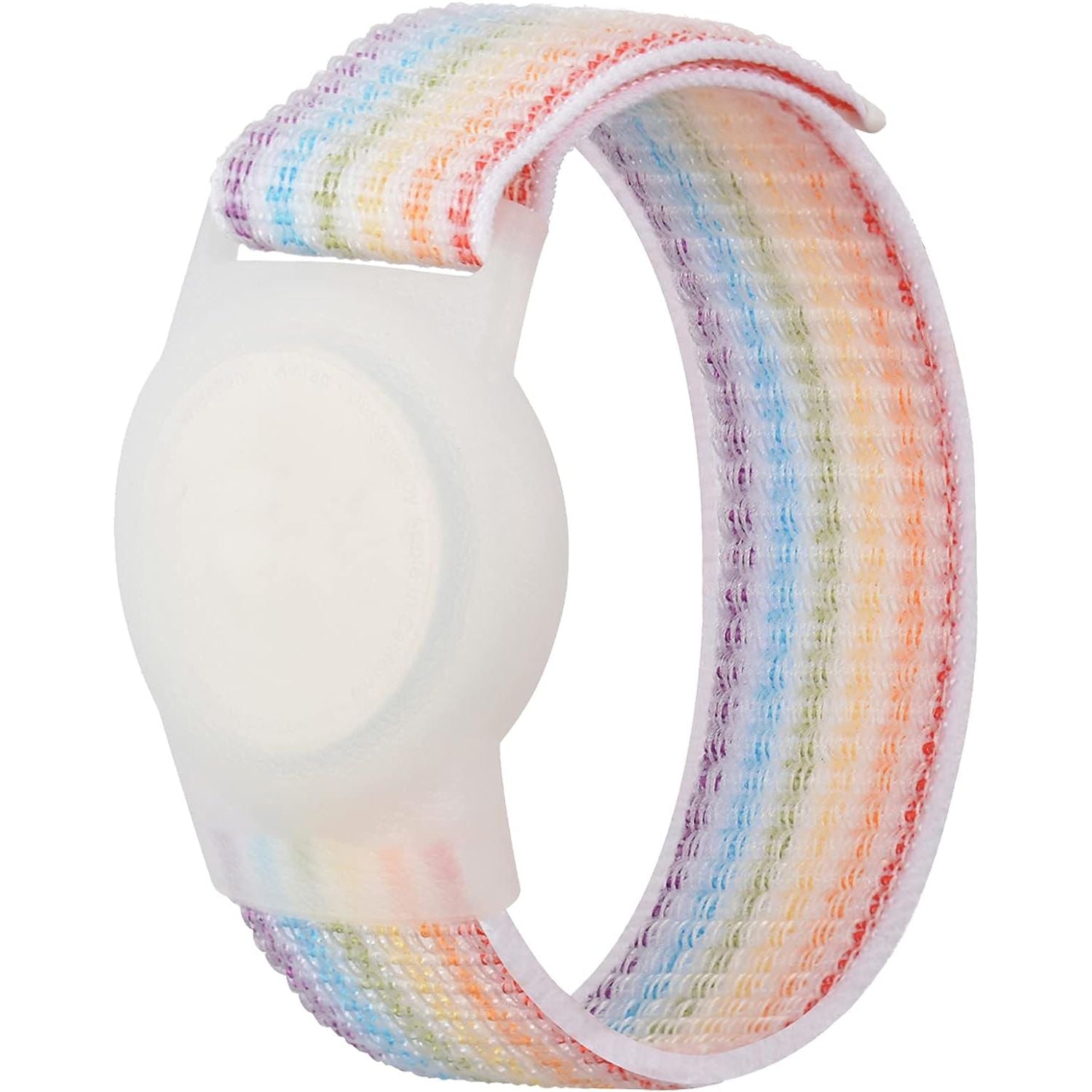 - Kids Wristband Compatible with Apple AirTag, Protective Case for Air Tag GPS Tracker Holder with Nylon Bracelet, Adjustable Anti Lost Watch Band for Toddler Child Elder(Rainbow A)