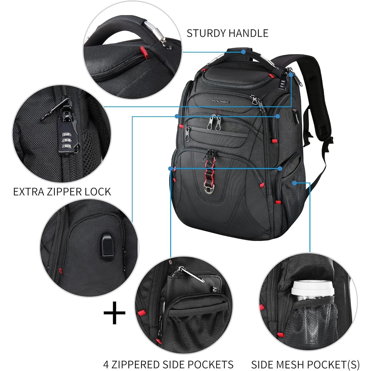 - KROSER TSA Friendly Travel Laptop Backpack 17.3 inch XL Computer Backpack Water-Repellent College Daypack Business Backpack with RFID Pockets & USB Port for Men/Women-Black