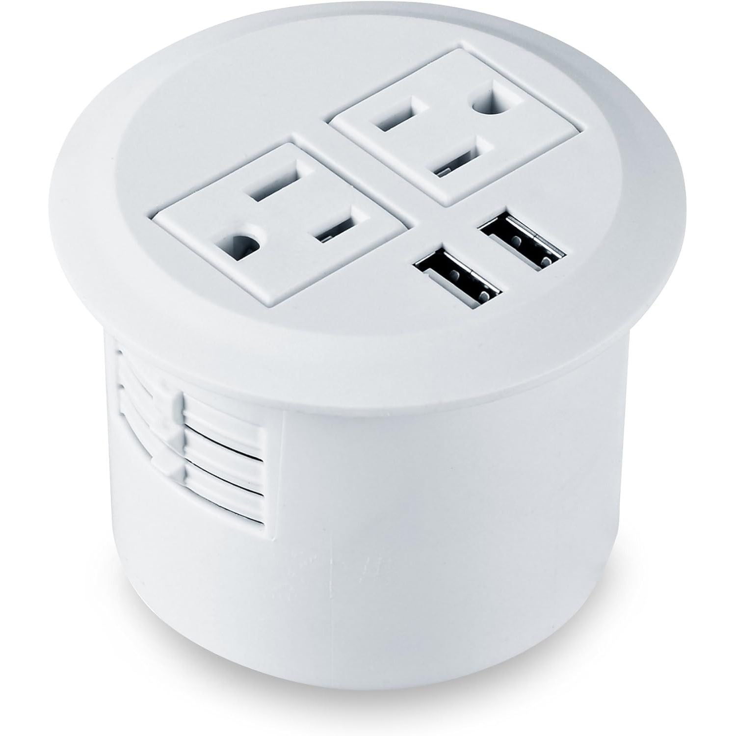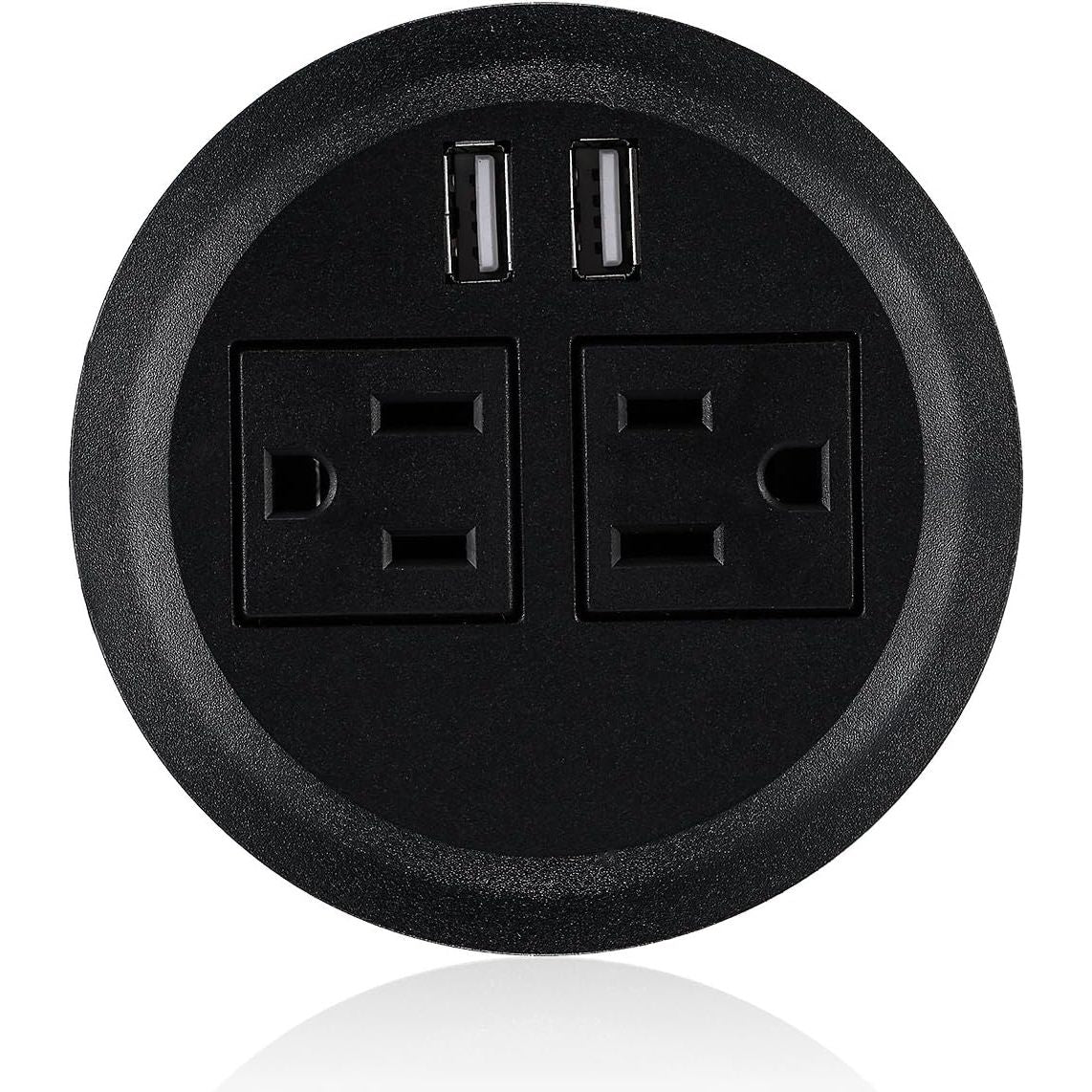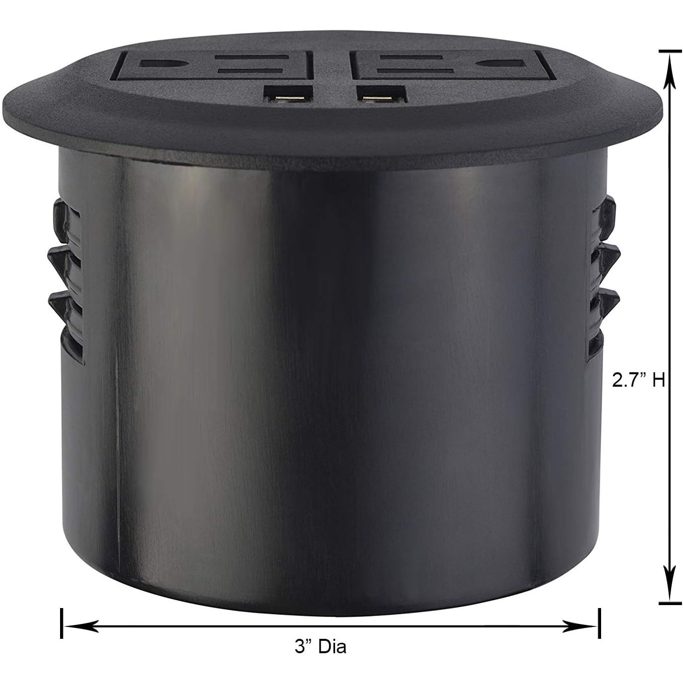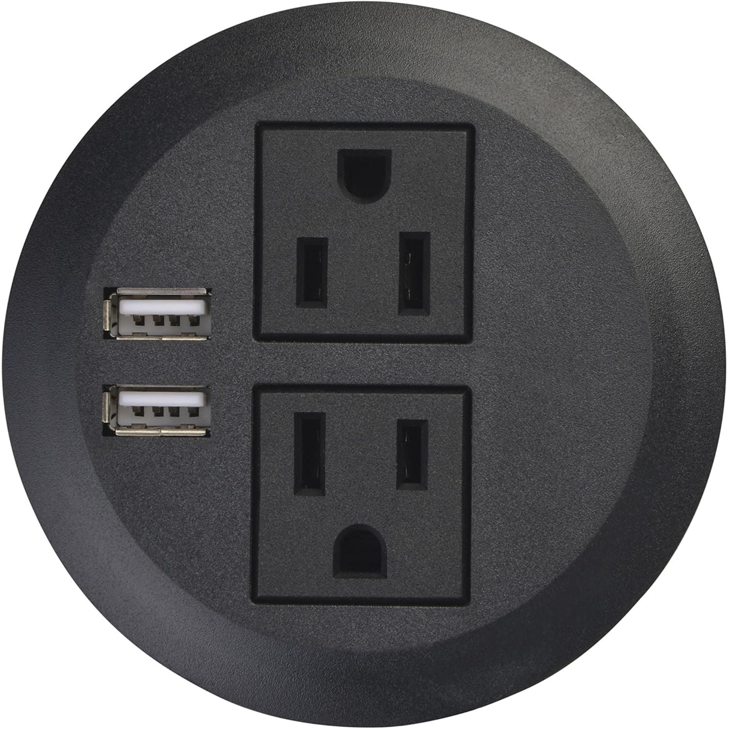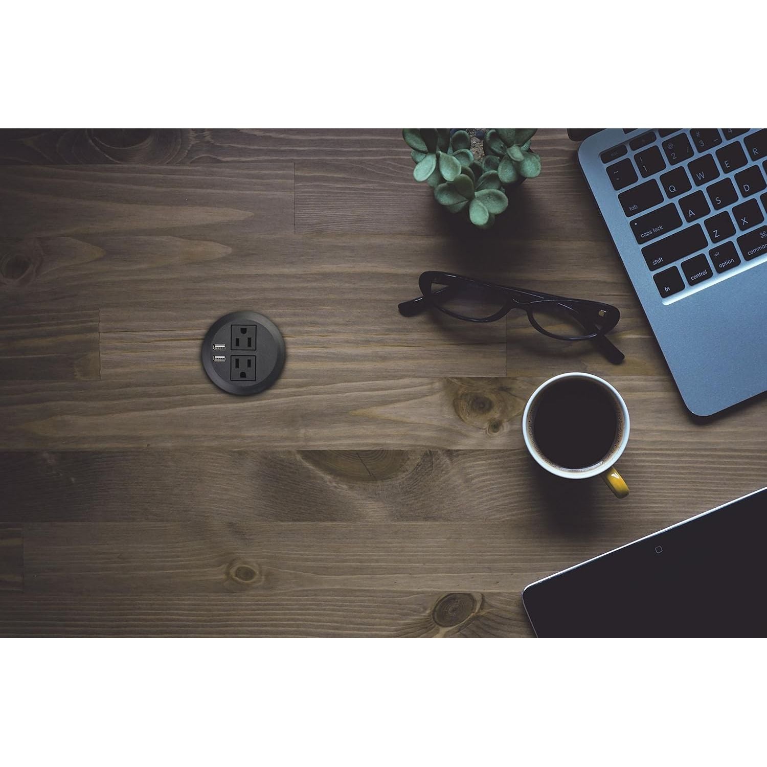 - Kungfuking Desktop Power Grommet Power Outlet Socket Desk Data Center 2 Outlet with 2 USB Ports with 10 FT Extension Cord Black