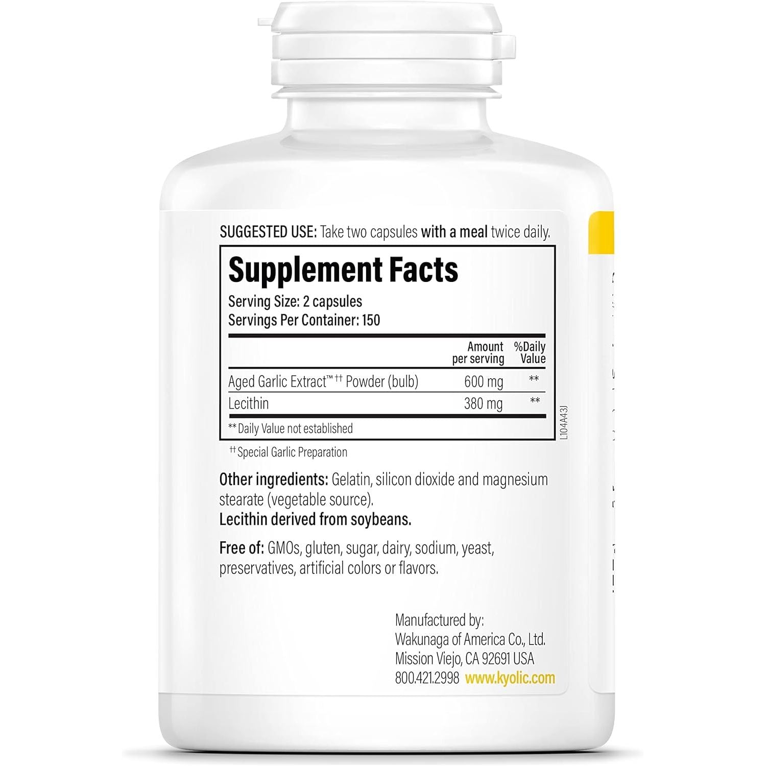 • always odorless: kyolic aged garlic extract is made from organically grown garlic that has been aged up to 20 months to enhance the nutritional value, remove its pungent odor and make it gentle on the stomach.