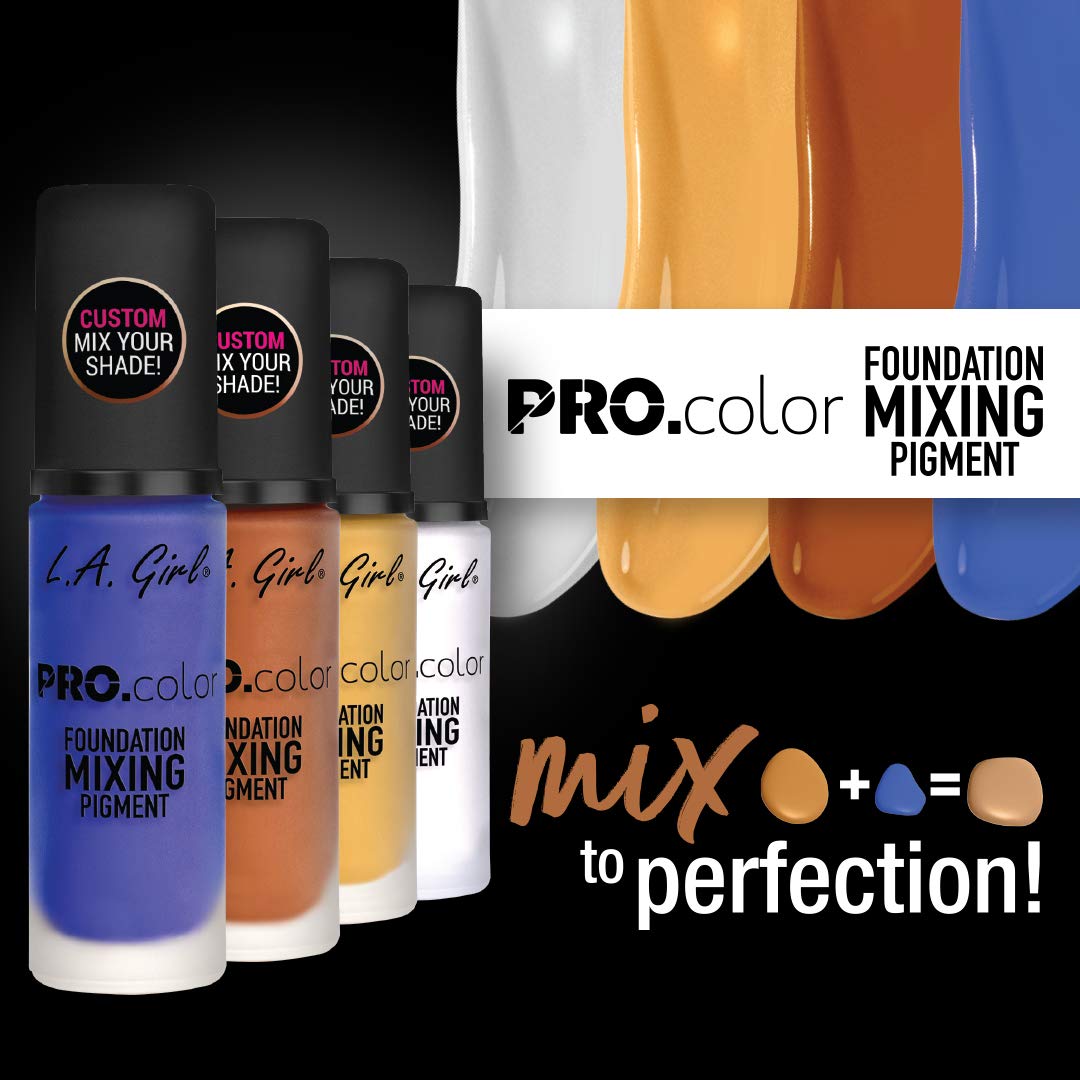 GLM712 Yellow L.A. Girl Pro mixing pigment - Extending the shade range of the matte foundation. Now, complete with 4 foundation mixing pigments - white, yellow, orange, & blue. Pro artist can create & color correct an array of shades while anyone can custom mix their exact shade.