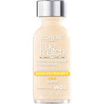 Product Description With patented color technology, L'Oreal Paris True Match Super-Blendable Foundation precisely matches your skin's tone and undertone and coordinates perfectly with True Match Powder, Blush, and Concealer. Formulated with Precise Match Technology to provide the most natural true-to-you coverage. Ultra-pure formula contains no oils, fragrances, or pore-clogging fillers, so all you see is beautiful, radiant, flawless skin. The super blendable foundation contains SPF 19 to protect skin while providing light to medium coverage with a natural finish. With Vitamins A and C, wheat germ and grape fruit extract to keep your skin nourished, protected and healthy. Finish: Natural SPF: 17 (select shades). Coverage: Light to medium coverage foundation. Skin Type: For all skin types. Oil-free. • Super Blendable Foundation • Precisely matches skin tone and undertone • Diffuses imperfections and nourishes skin • 33 True to you shades Shake well before using. Apply directly to face with fingertips or sponge. Blend in an outward motion as needed. For external use only. Avoid contact with eyes. Discontinue use if signs of irritation or rash appear. Keep out of reach of children. Brand Story By L'Oreal Paris