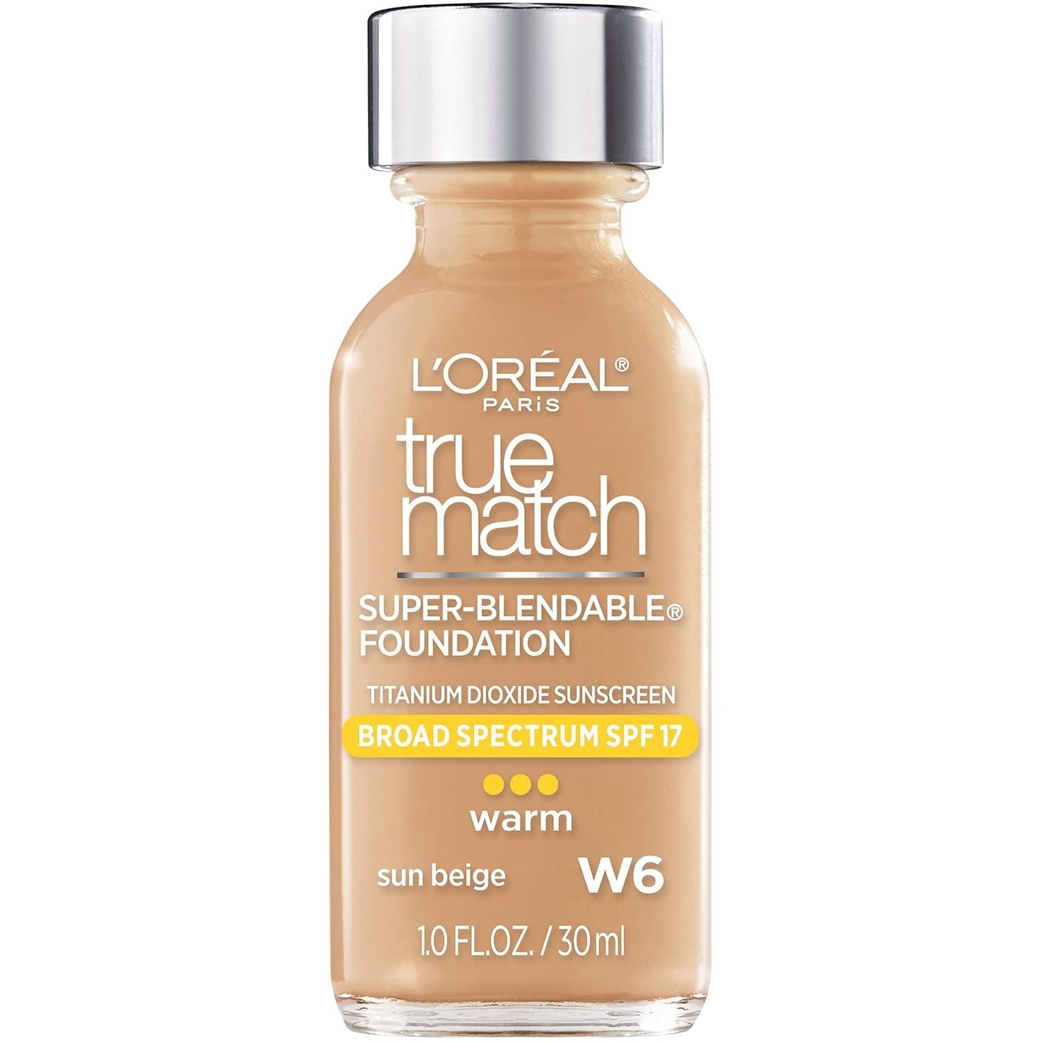 Product Description With patented color technology, L'Oreal Paris True Match Super-Blendable Foundation precisely matches your skin's tone and undertone and coordinates perfectly with True Match Powder, Blush, and Concealer. Formulated with Precise Match Technology to provide the most natural true-to-you coverage. Ultra-pure formula contains no oils, fragrances, or pore-clogging fillers, so all you see is beautiful, radiant, flawless skin. The super blendable foundation contains SPF 19 to protect skin while providing light to medium coverage with a natural finish. With Vitamins A and C, wheat germ and grape fruit extract to keep your skin nourished, protected and healthy. Finish: Natural SPF: 17 (select shades). Coverage: Light to medium coverage foundation. Skin Type: For all skin types. Oil-free. • Super Blendable Foundation • Precisely matches skin tone and undertone • Diffuses imperfections and nourishes skin • 33 True to you shades Shake well before using. Apply directly to face with fingertips or sponge. Blend in an outward motion as needed. For external use only. Avoid contact with eyes. Discontinue use if signs of irritation or rash appear. Keep out of reach of children. Brand Story By L'Oreal Paris