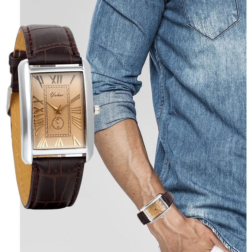 - 【PAIR WITH ANY OUTFIT】This brown leather band rectangle face mens watch will go great with any outfit and any occasion. It enables you to easily spice up a normal outfit and add style to your life.