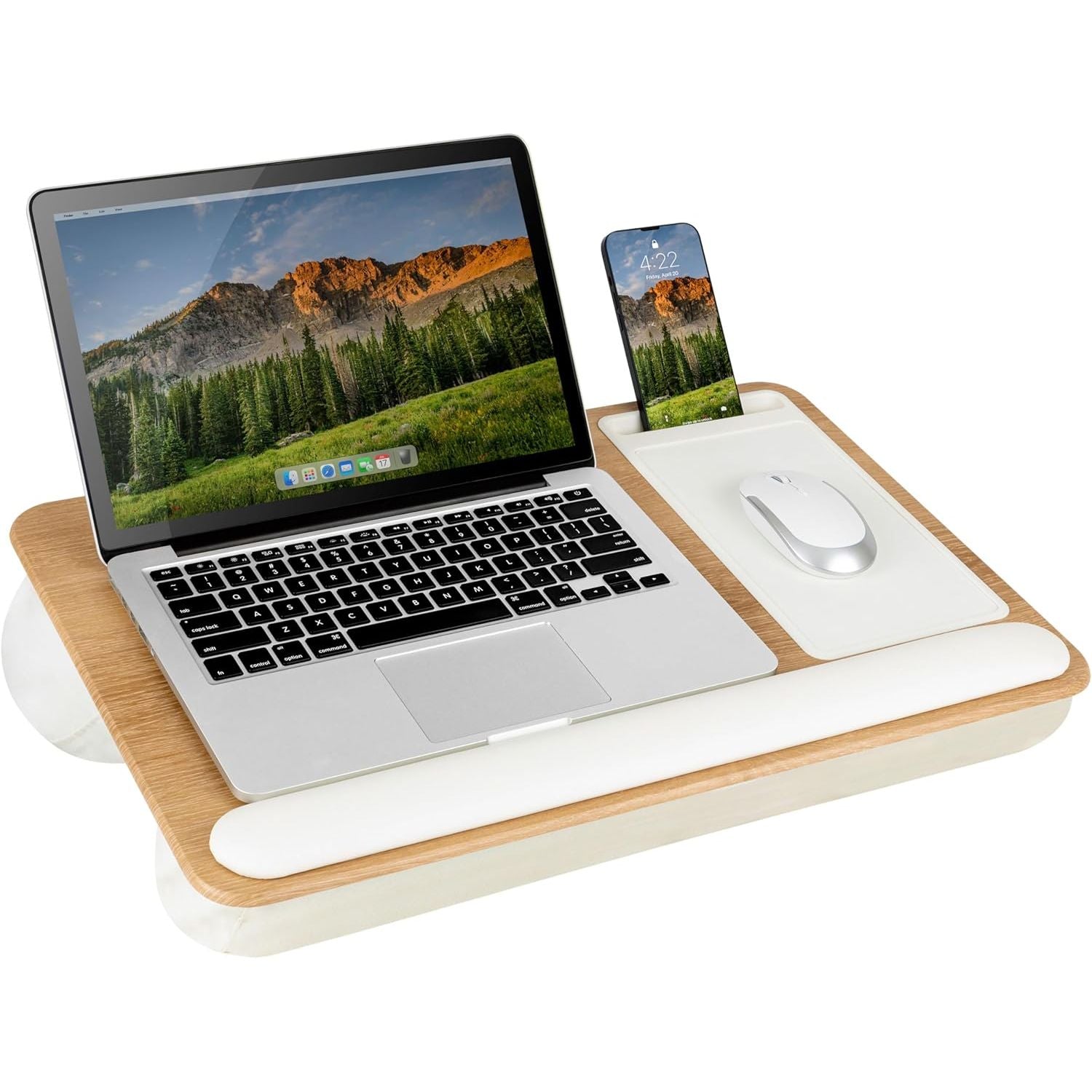 LAPGEAR Home Office Pro Lap Desk with Wrist Rest, Mouse Pad, and Phone Holder - Oak Woodgrain - Fits up to 15.6 Inch Laptops - Style No. 91599