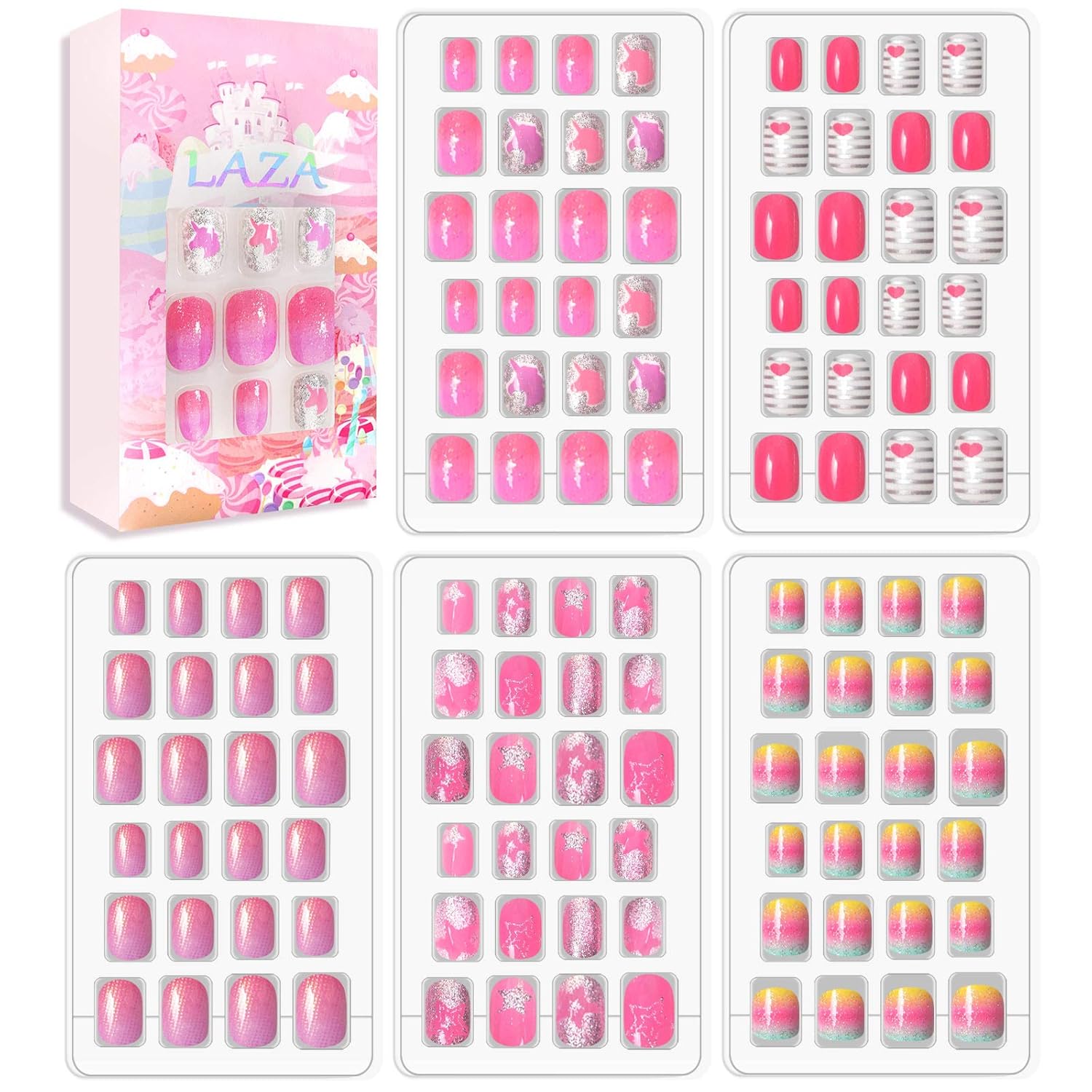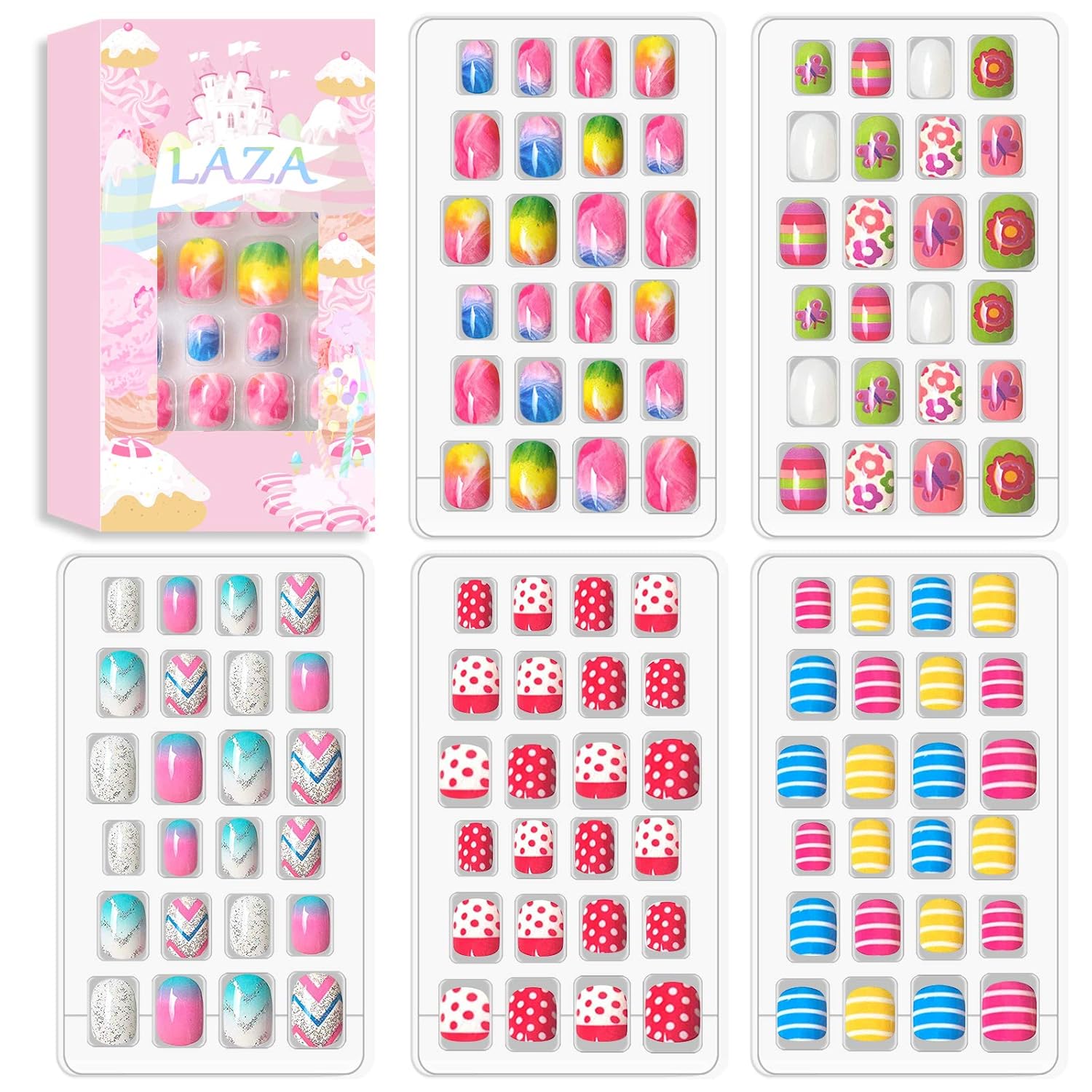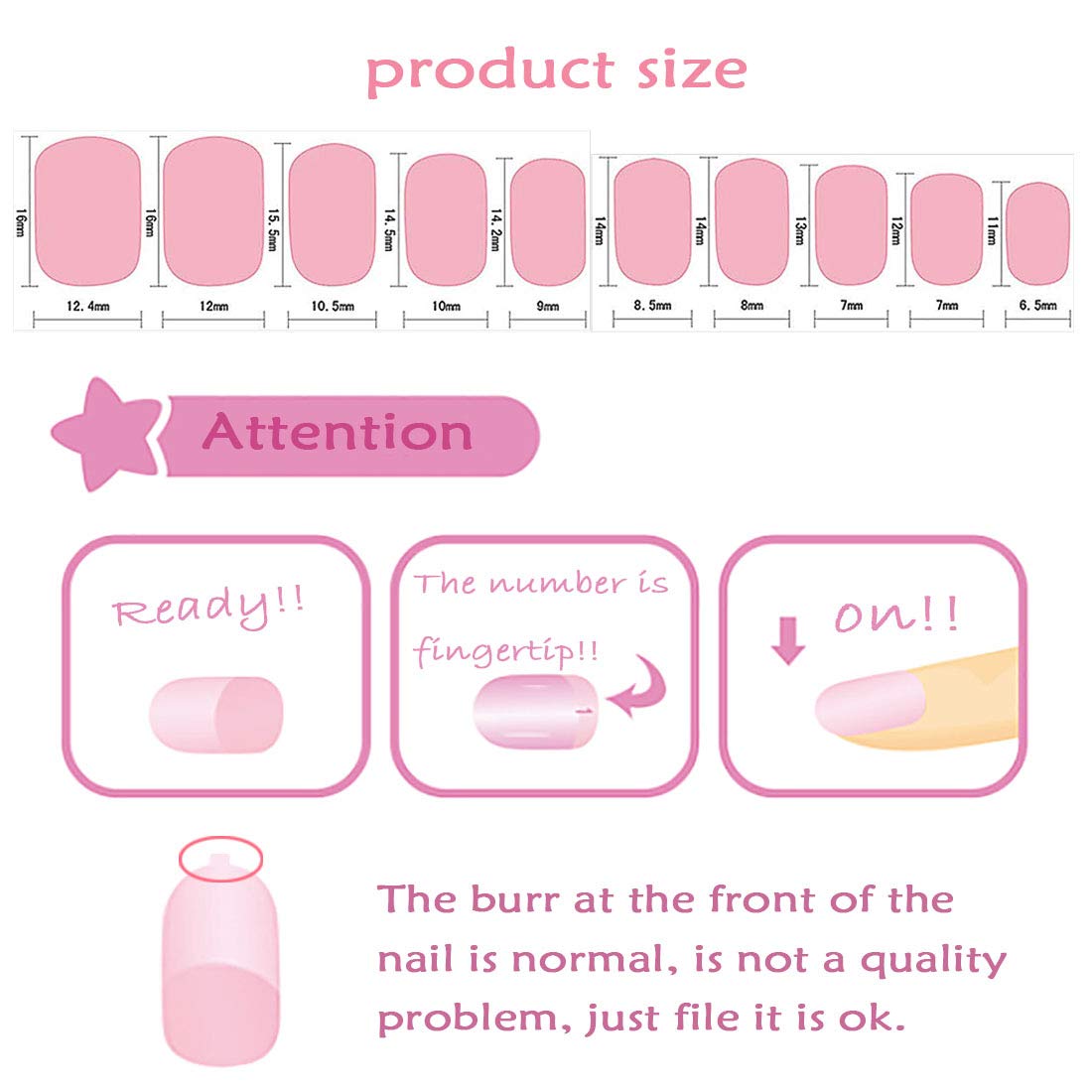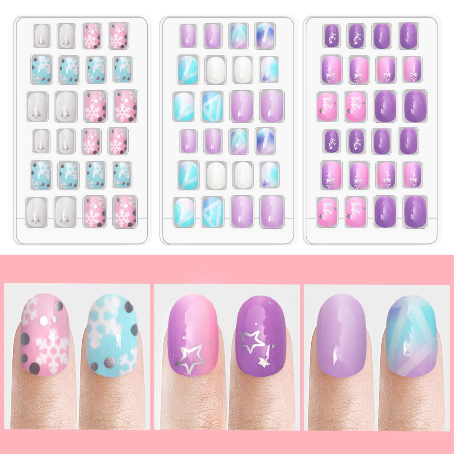 - ♦ Varied Size: The 120pcs girls fake nails set offers 24 different sizes that fit most fingers, which is individually numbered 0-9, so they're easy to keep track of, and convenient to choose the suitable size that fits your every finger