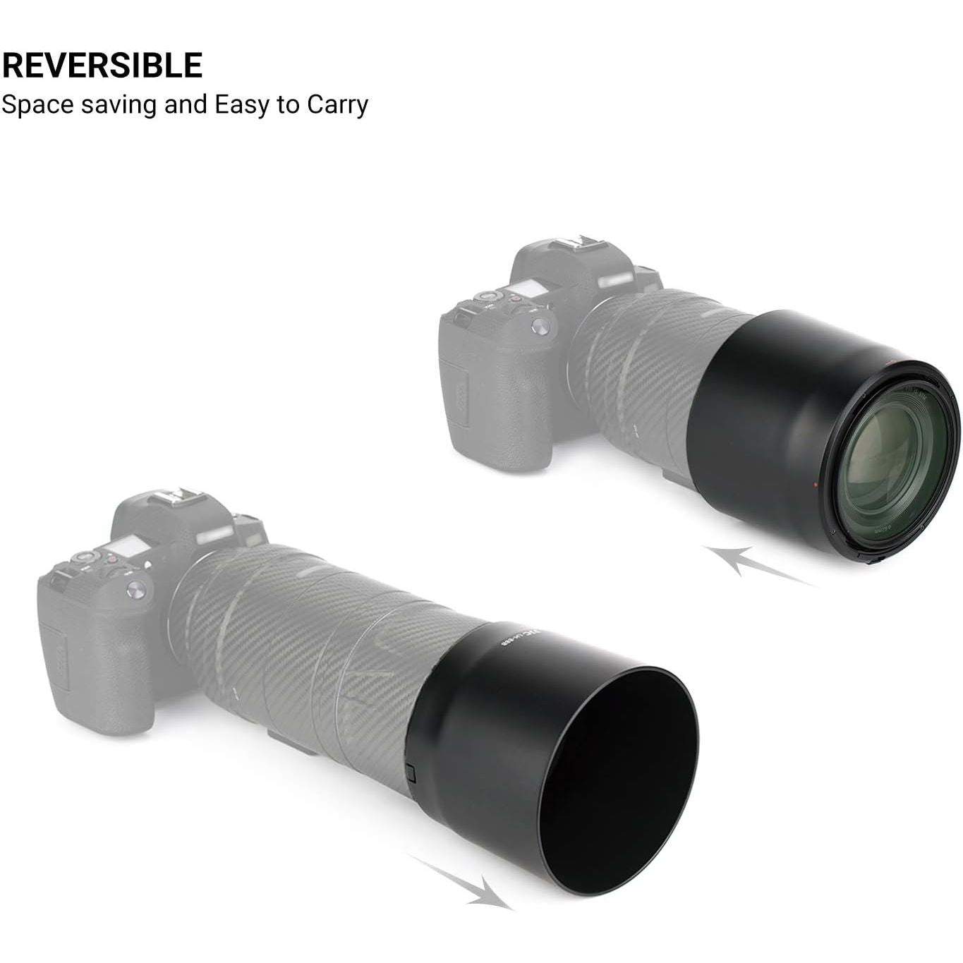 - 【REVERSIBLE】:The lens hood can be reversed on the lens to reduce space and facilitate storage and carrying of the camera.