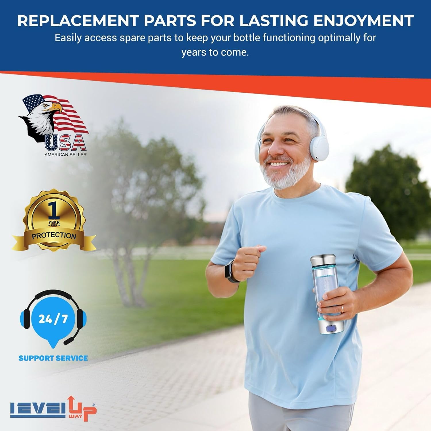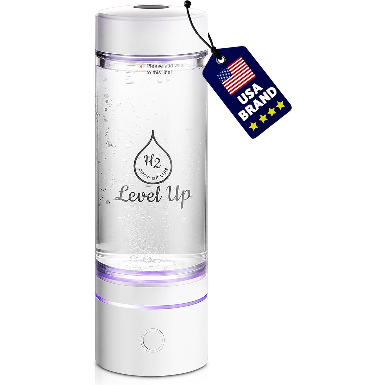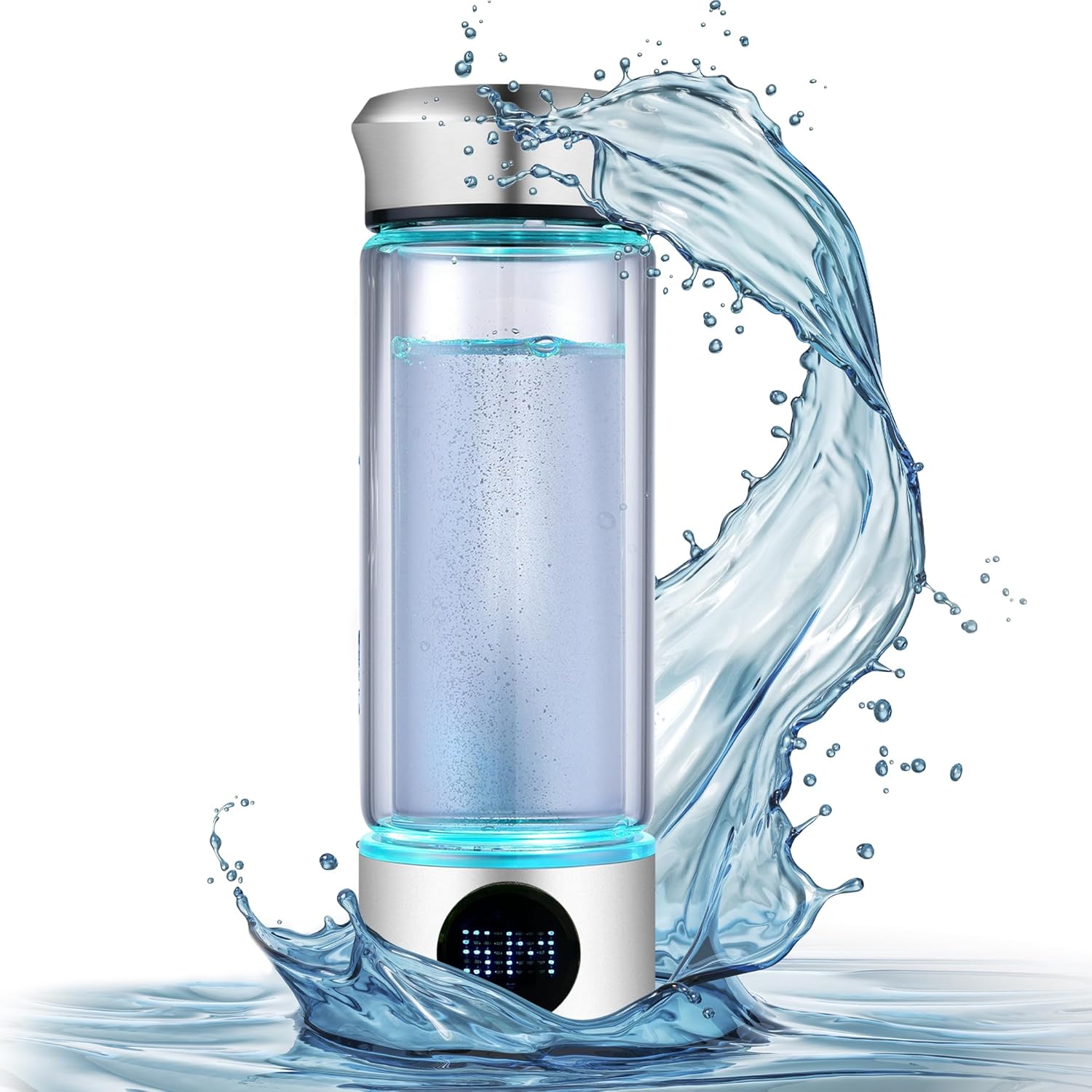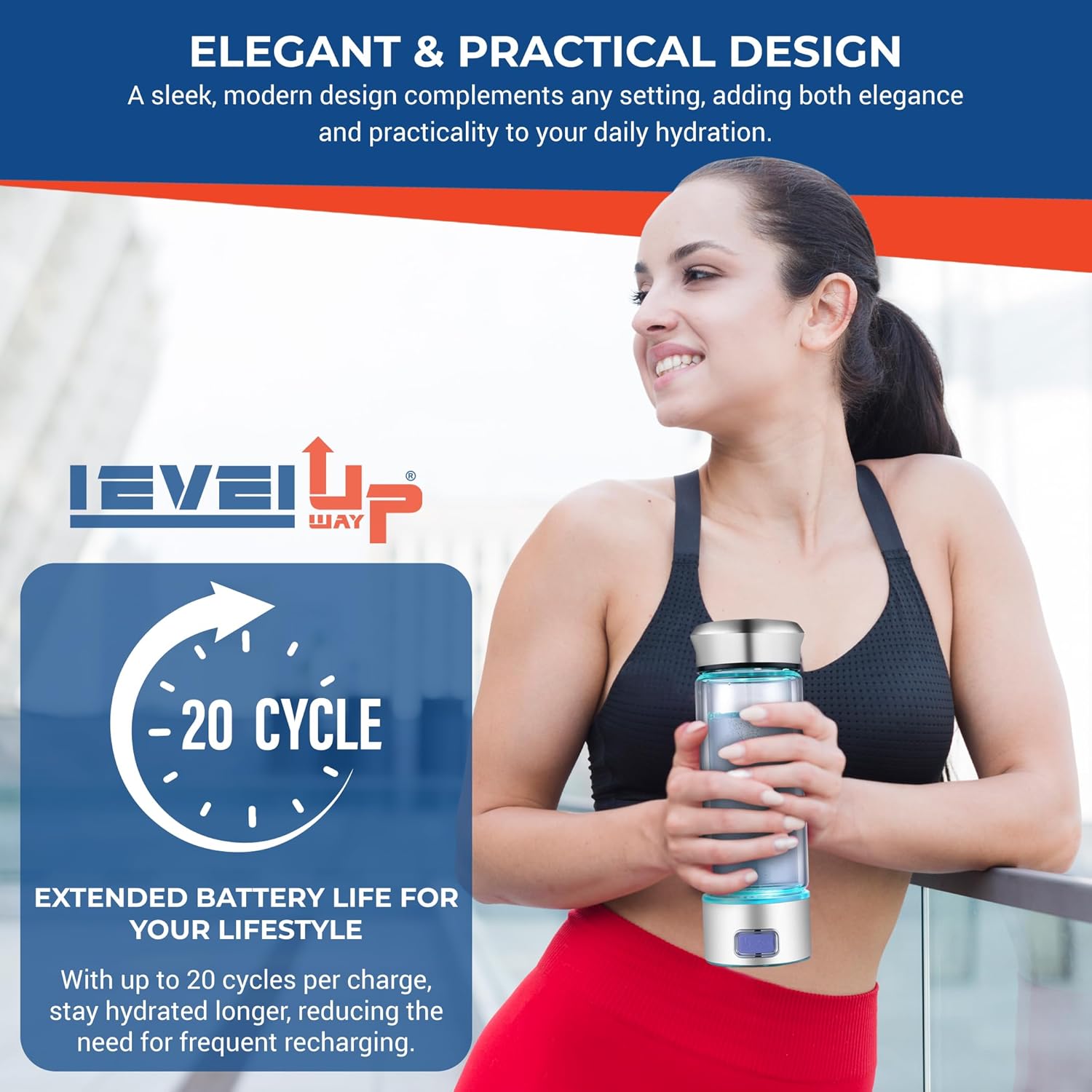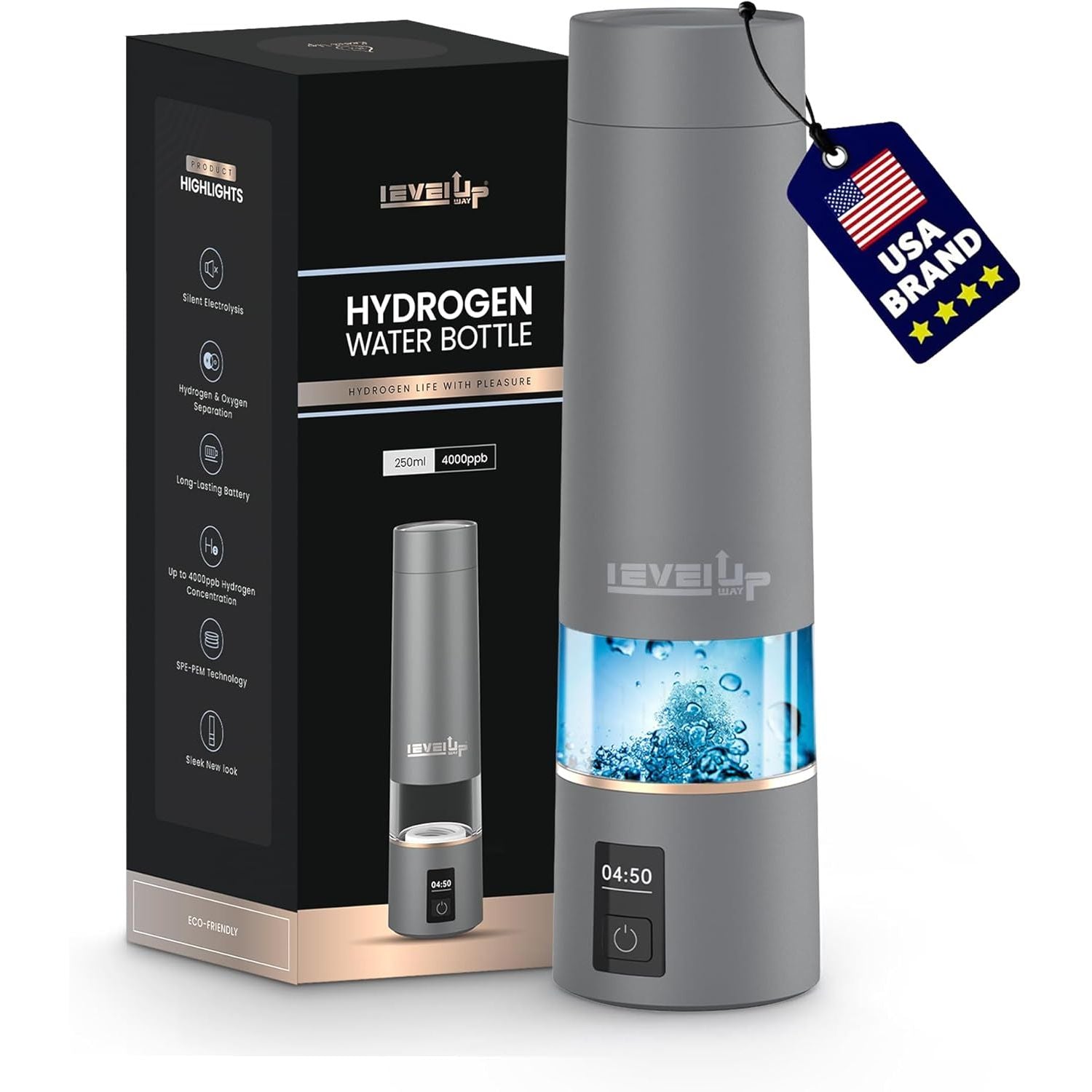 - LevelUpWay - Hydrogen Water Bottle Up to 4000PPB SPE PEM Technology Water Ionizer (Borosilicate Glass, Silver)