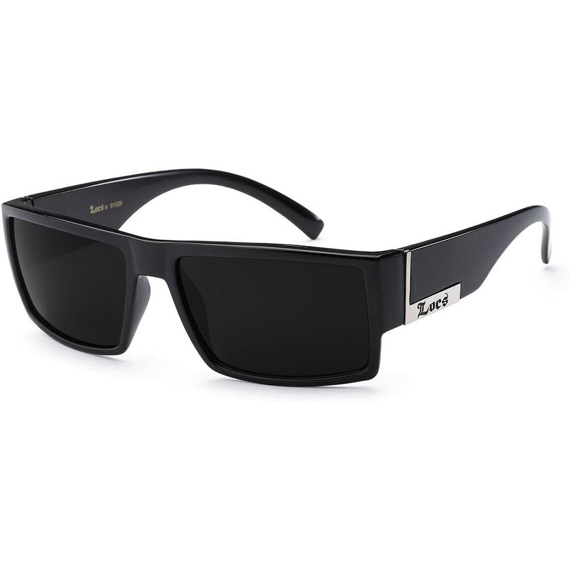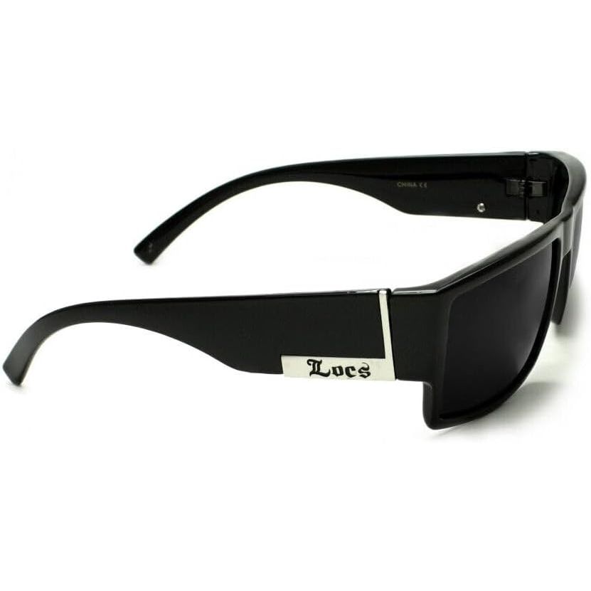 - Locs Mens Flat Top Gangster Sunglasses Black Silver Frame 91026 (Black), 5.5w x 1.75h