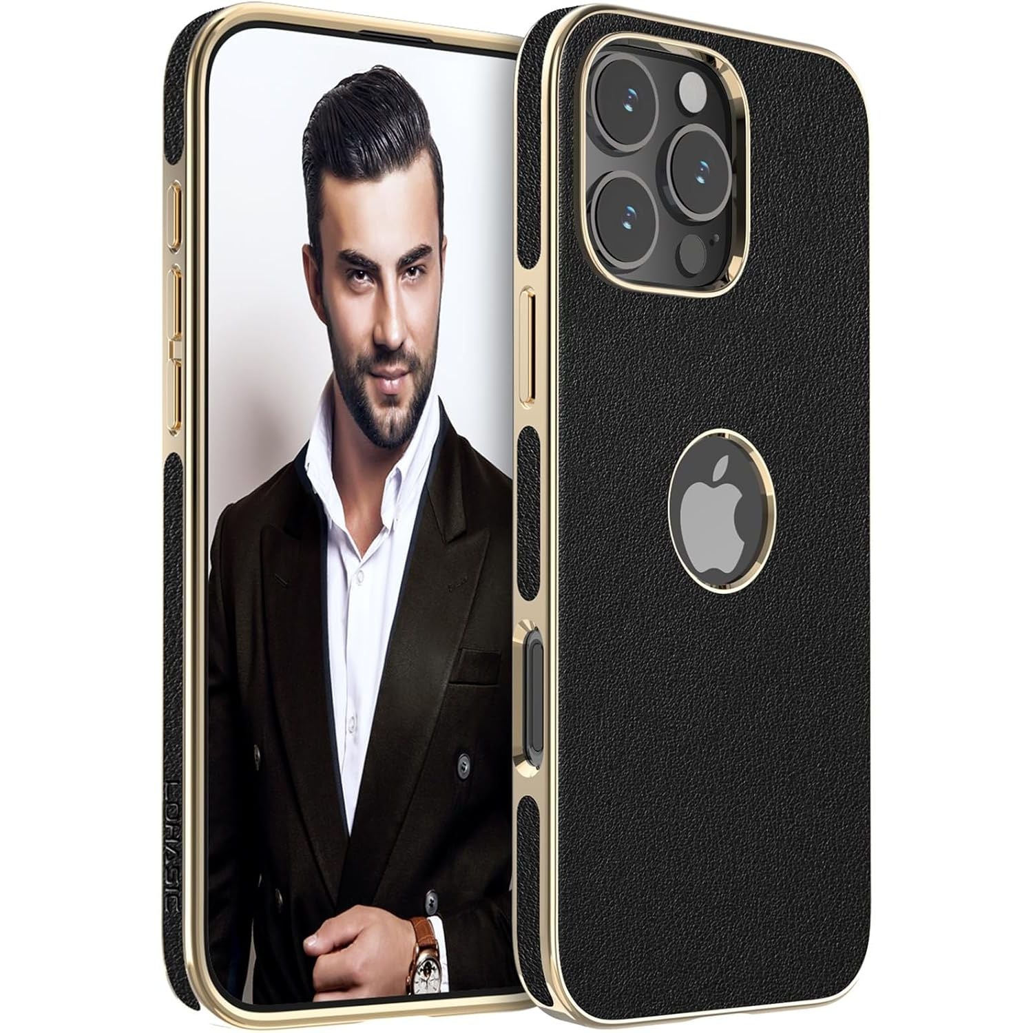 - [Classic Logo Visible Design] - Light gold electroplated bumper trime make case more stylish and classy, hole of back cover naturally shows classic beautiful lines of the logo. Business simple elegant style, Luxury for iPhone 13 Pro Max Case for Men &Women