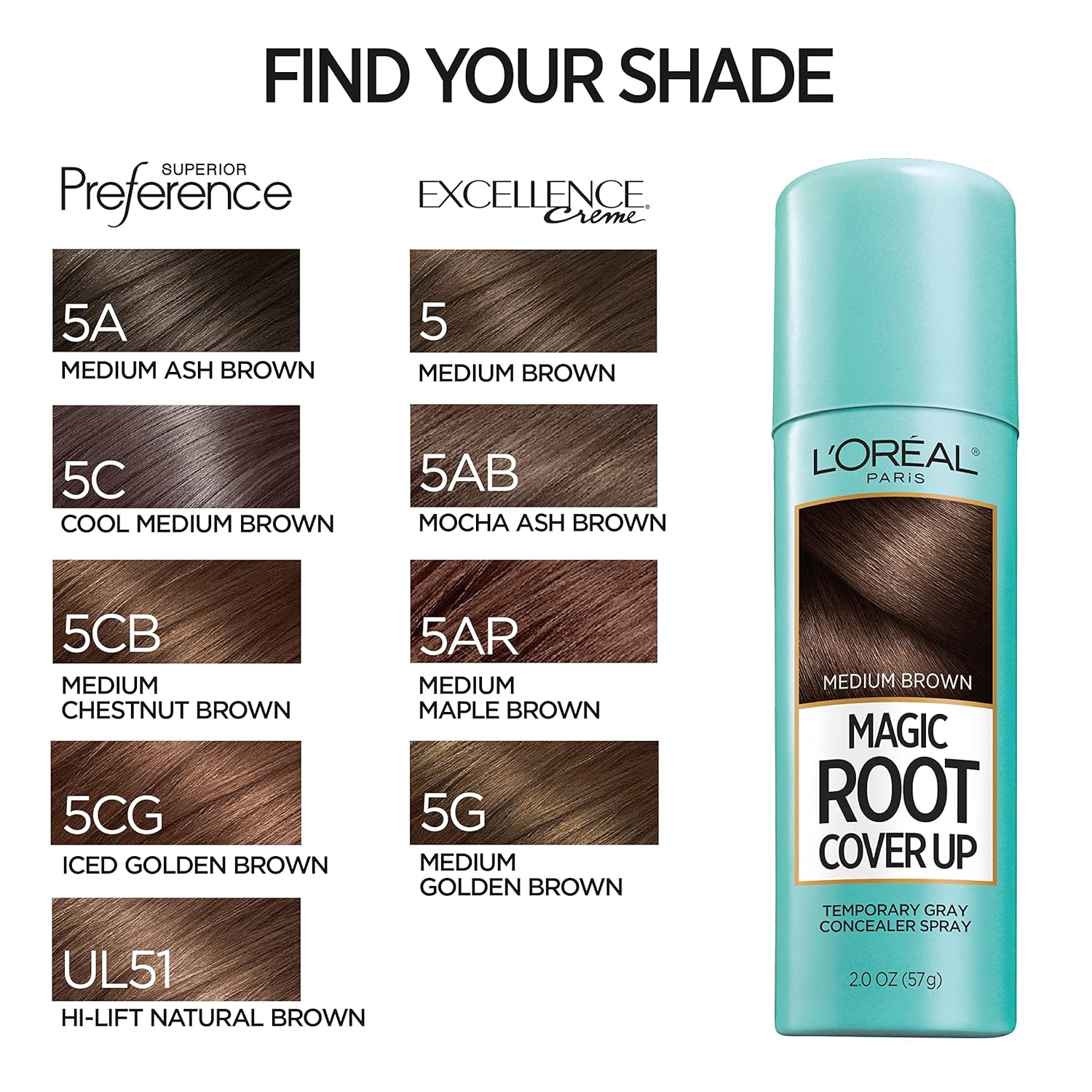 - L'Oreal Paris Magic Root Cover Up Gray Concealer Spray, Medium Brown, 2 Oz(Packaging May Vary)