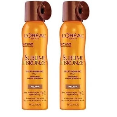 - L’Oreal Paris Sublime Bronze Self-Tanning Mist is a self-tanner that gives you a natural-looking medium shade tan without exposure to the sun