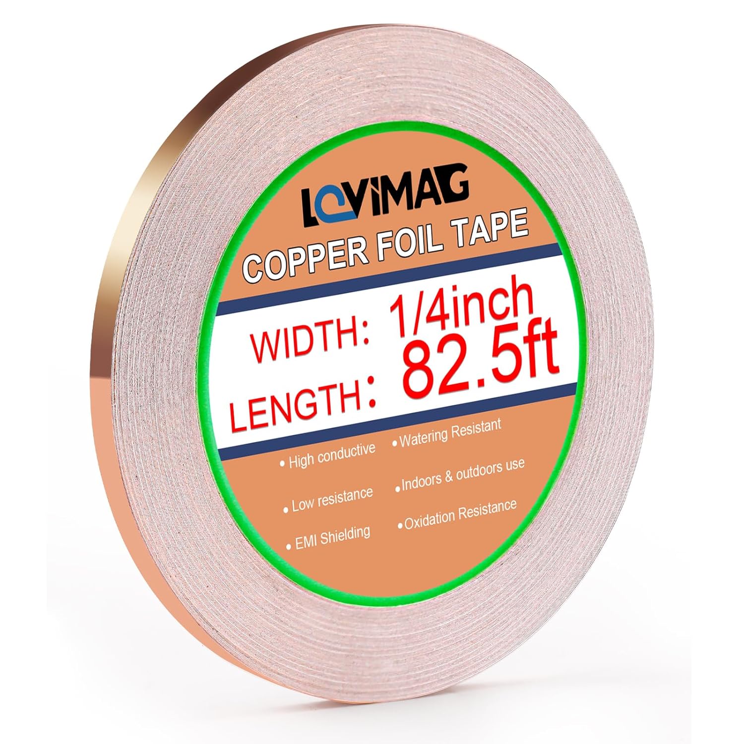- LOVIMAG Copper Foil Tape (2inch X 33 FT) with Conductive Adhesive for Guitar and EMI Shielding, Crafts, Electrical Repairs, Grounding, Adhesive Tape.