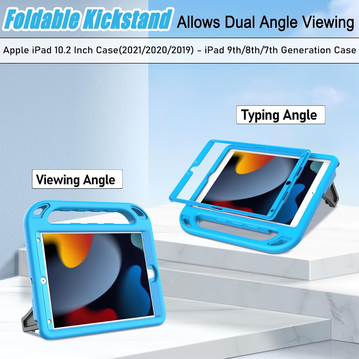 - SHOCK-PROOF DROP-PROTECTION - iPad 10.2 inch case 2021 for kids, made of shock-absorbing, impact-resistant EVA (Ethylene Vinyl Acetate) foam material, light weight yet durable, absolutely kid-friendly, provides decent protection for your iPad 9th/8th/7th gen