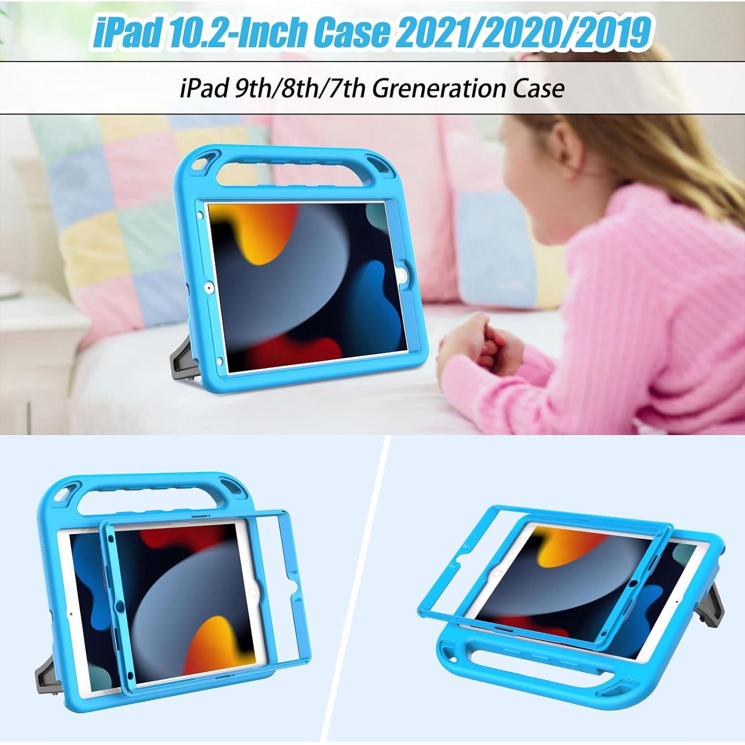 - WONDERFUL CHOICE - iPad case 9th/8th/7th generation comes in a series of bright and enjoyable colors, designed with convenient handle and kickstand, easy to grip/hold, ideal gift choice for family and friends
