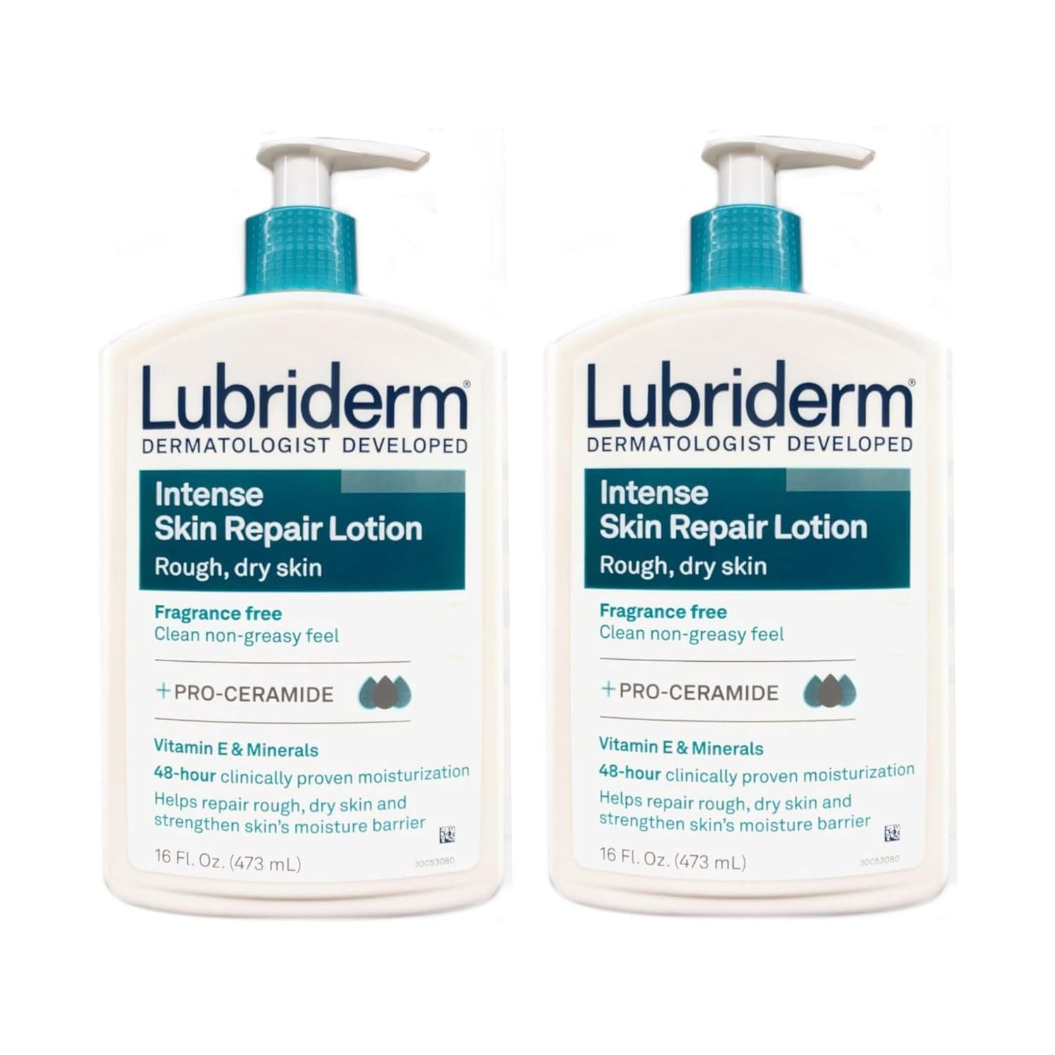 • 16-fluid ounce bottle of Lubriderm Intense Skin Repair Lotion+ Pro-Ceramide with Vitamin E and Pro-Vitamin B5 to help strengthen skin's moisture barrier and intensely hydrate extra-dry skin