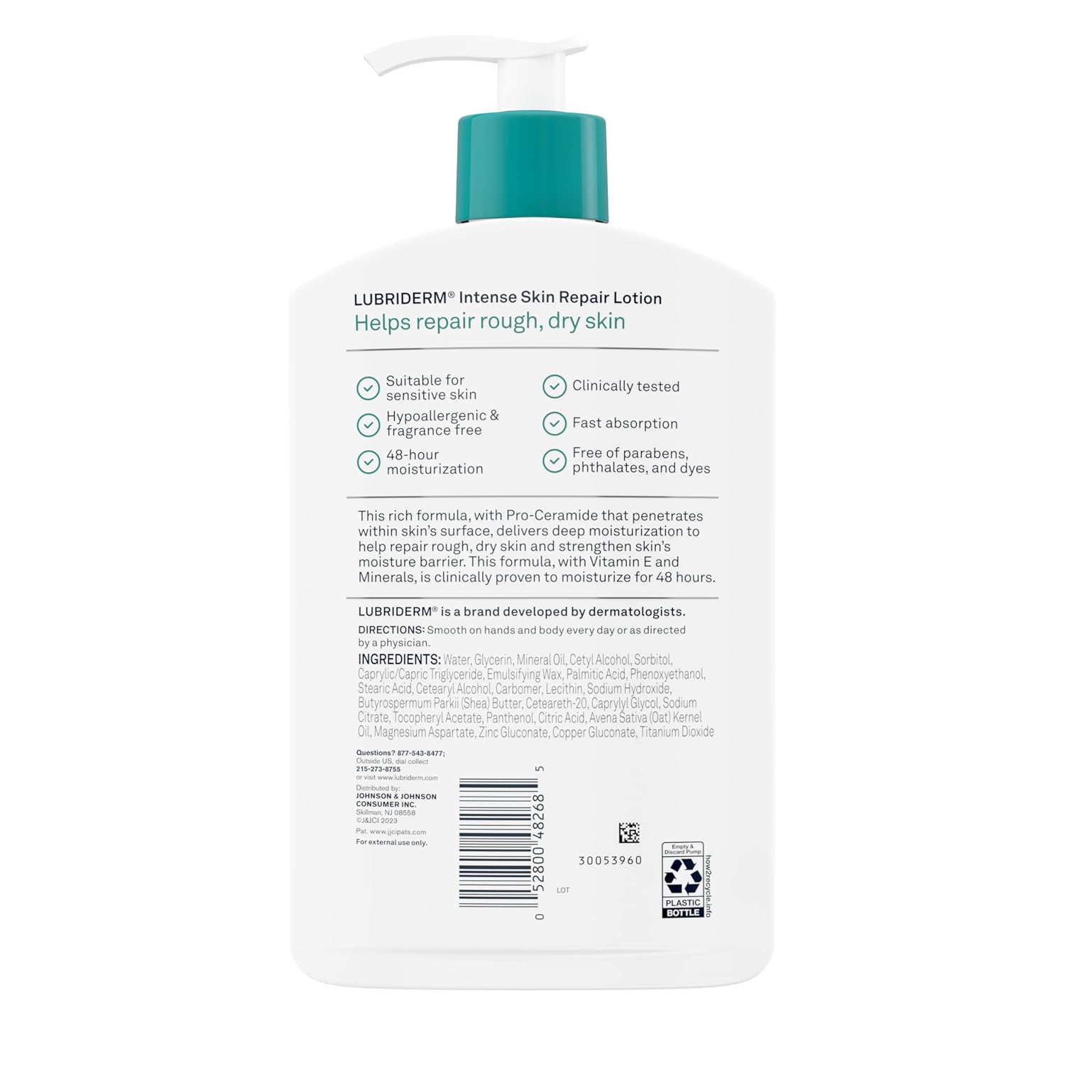 Lubriderm Intense Skin Repair Moisturizing Hand & Body Lotion + Pro-Ceramide, 48-Hour Hydration for Rough, Dry, & Sensitive Skin, Non-Greasy, Hypoallergenic, Lightly Scented, 16 fl. oz