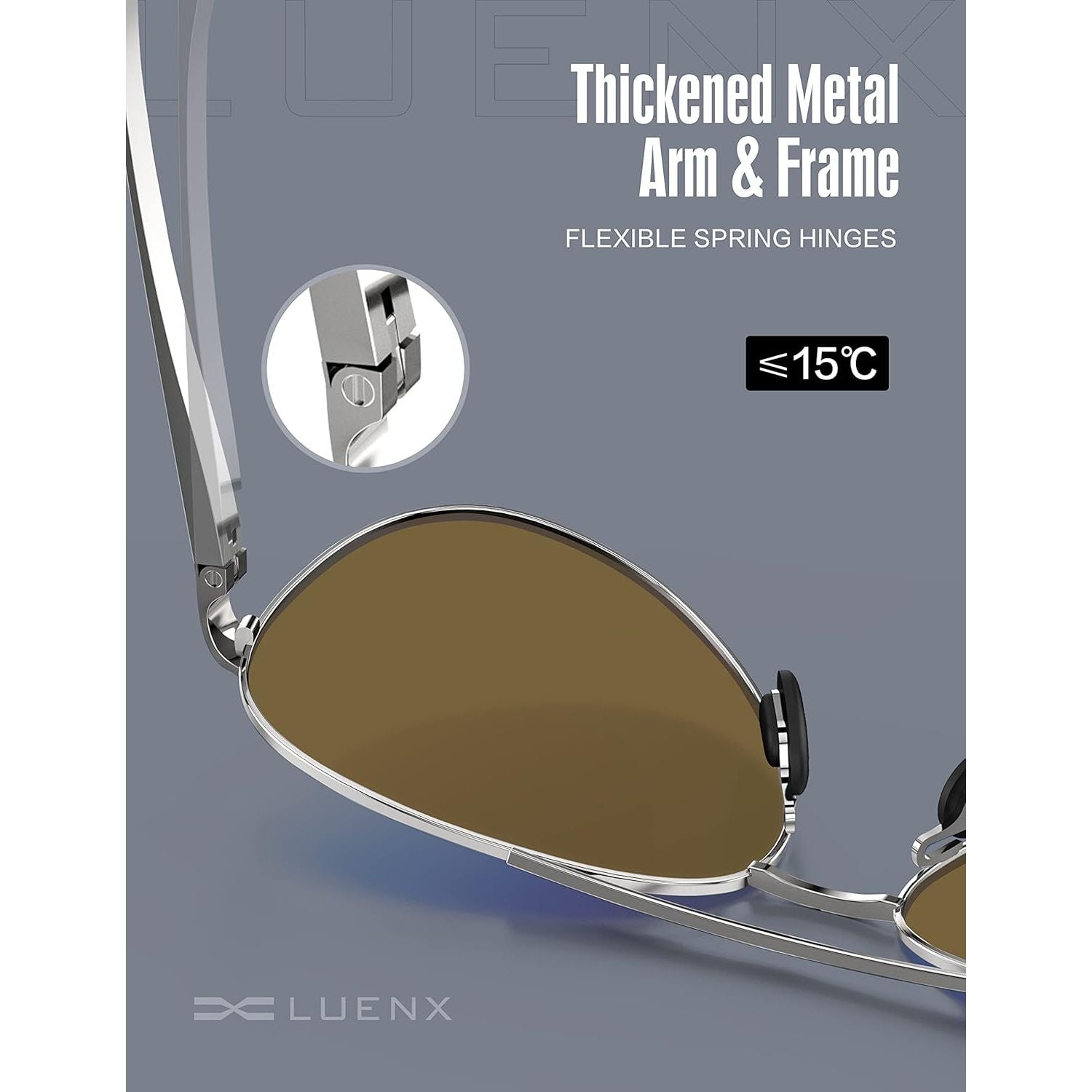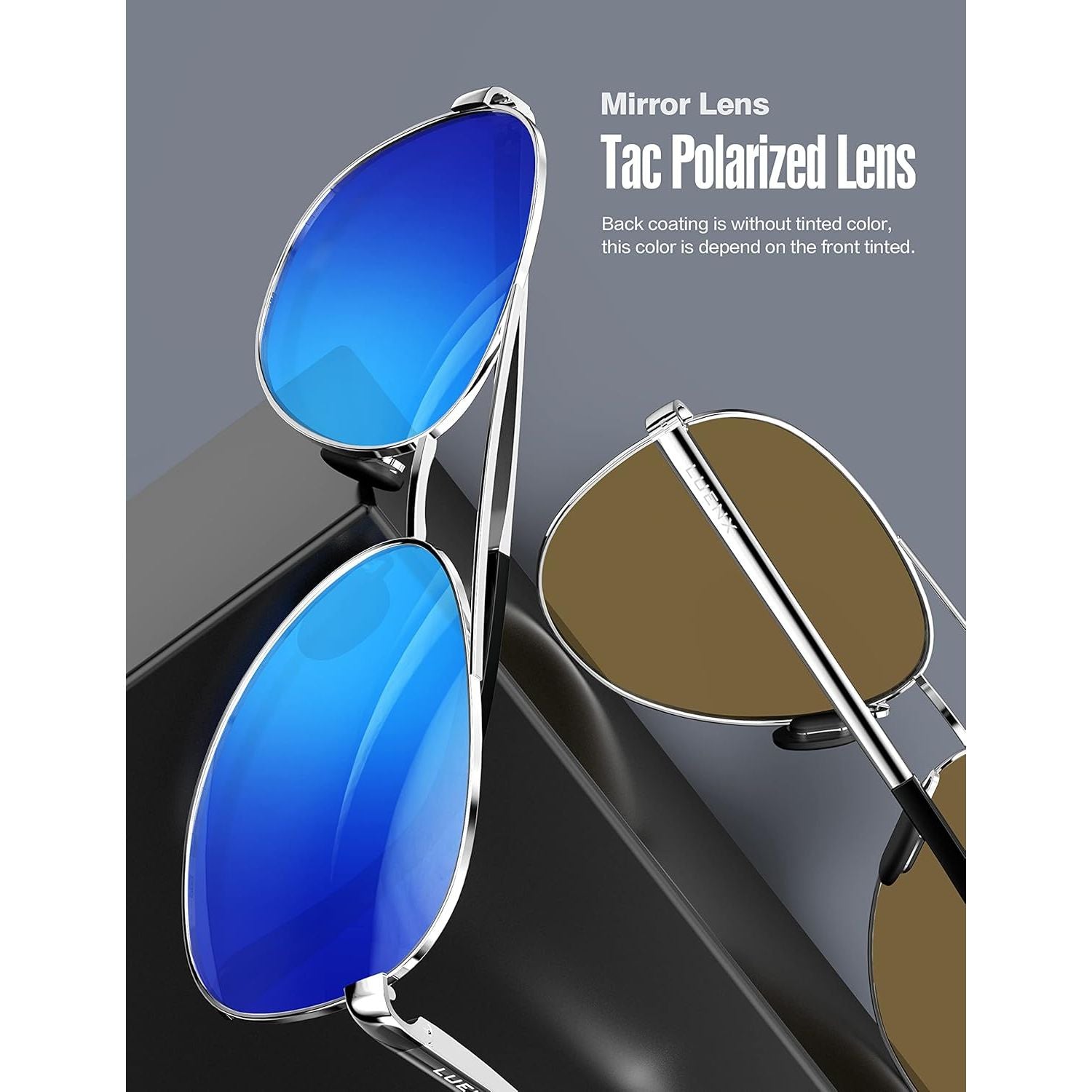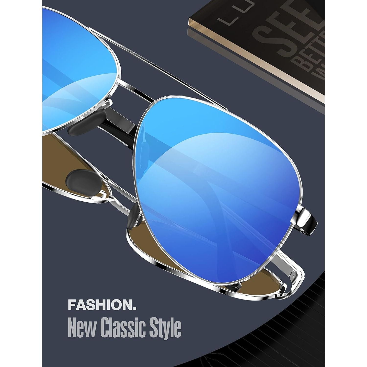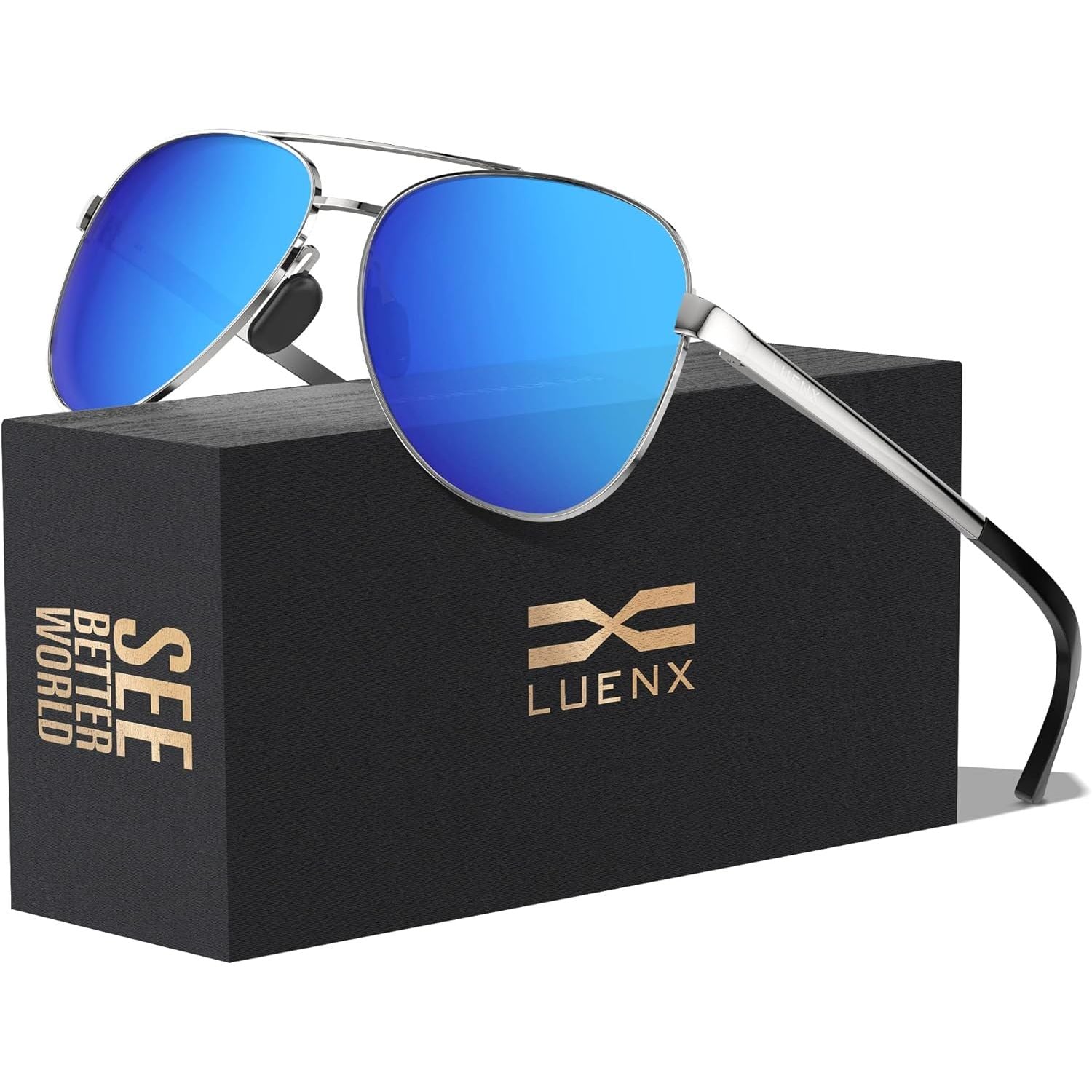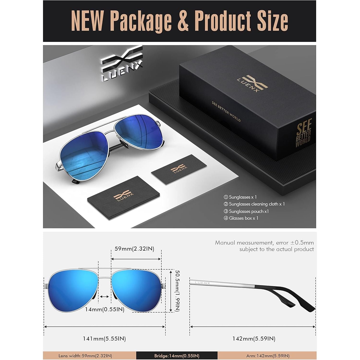 - LUENX Aviator Sunglasses for Men Women Polarized - Silver Frame Blue Lens Mirrored Driving uv 400 Protection