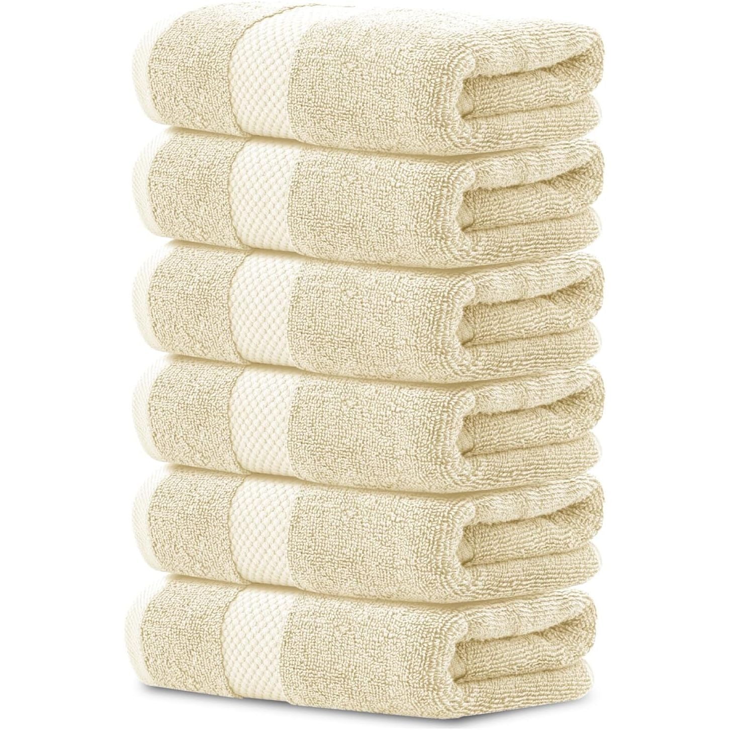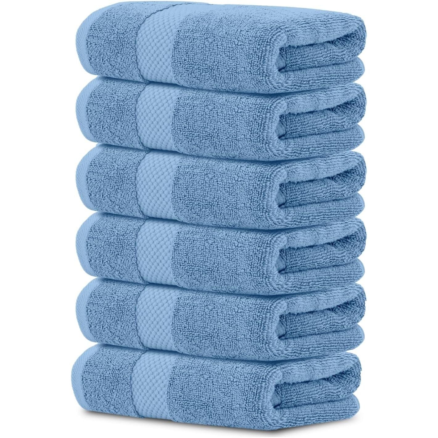 • HOTEL COLLECTION - 6-Piece Hand Towels are generously Sized at 16x30 inches. Each towel is 100% turkish cotton - soft, durable, quick-dry, and wonderfully absorbent.