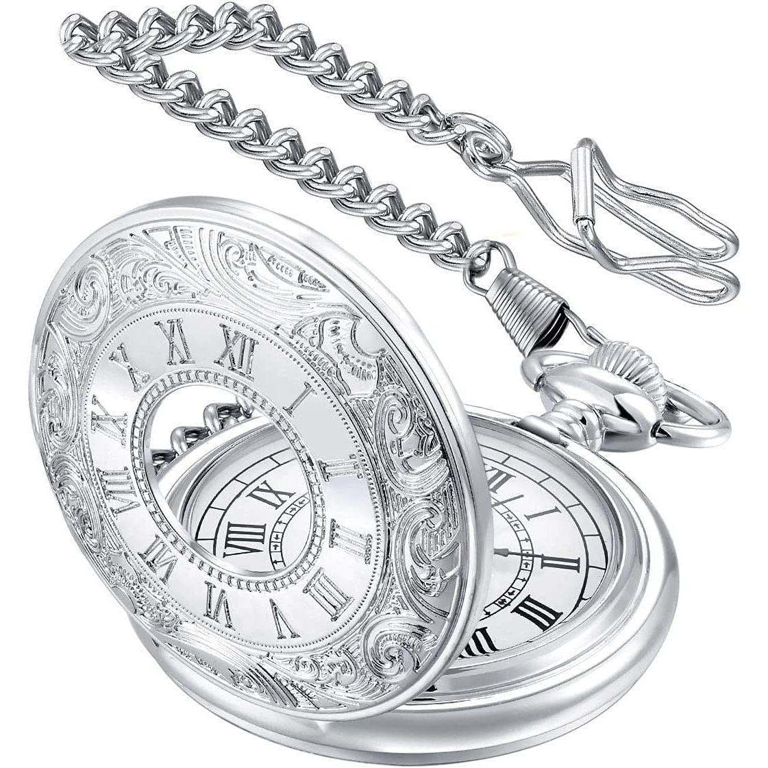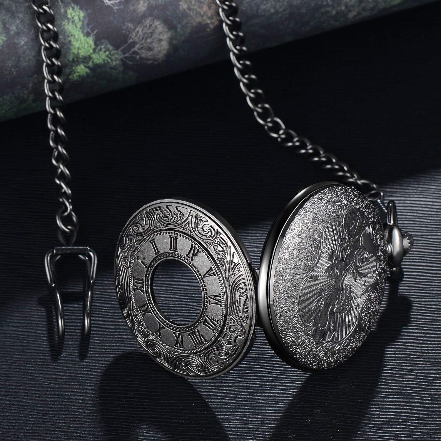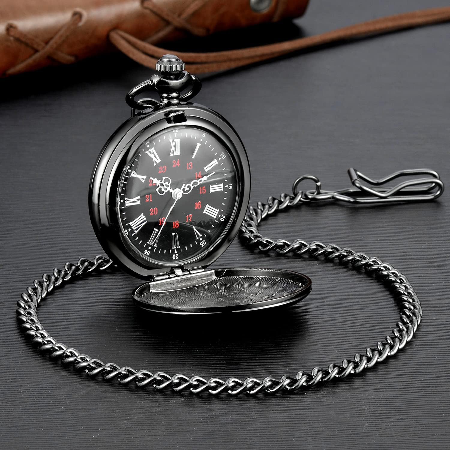 LYMFHCH Vintage Pocket Watch Roman Numerals Scale Quartz Pocket Watches with Chain Christmas Graduation Birthday Gifts Fathers Day