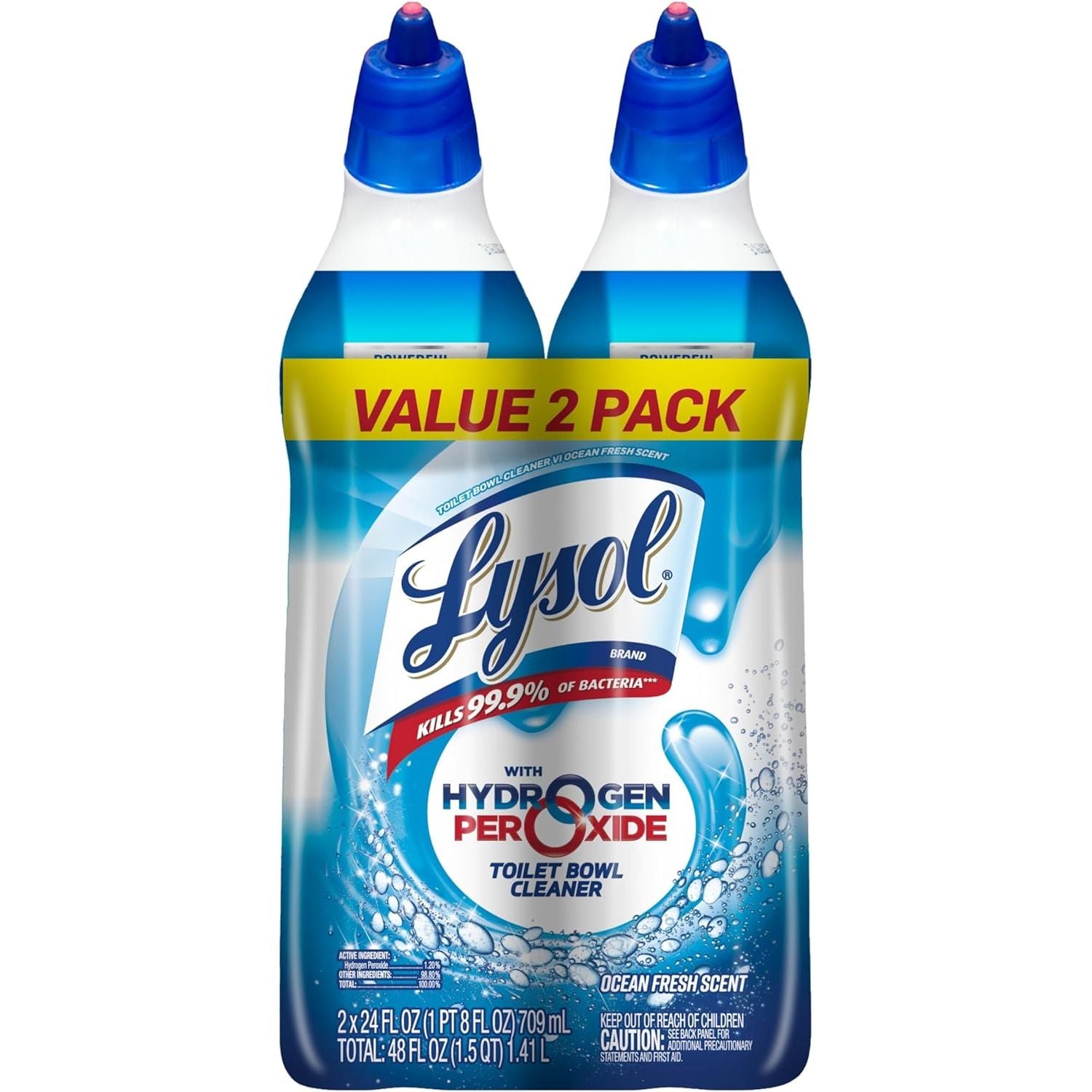 - Lysol Toilet Bowl Cleaner, Max Strength Bathroom Cleaning Supplies, Toilet Bowl Cleaner Clinging Gel, Home Essential, Instant Stain Removal, Disinfecting and Deodorizing, Bleach Free, 24 oz (2 ct)