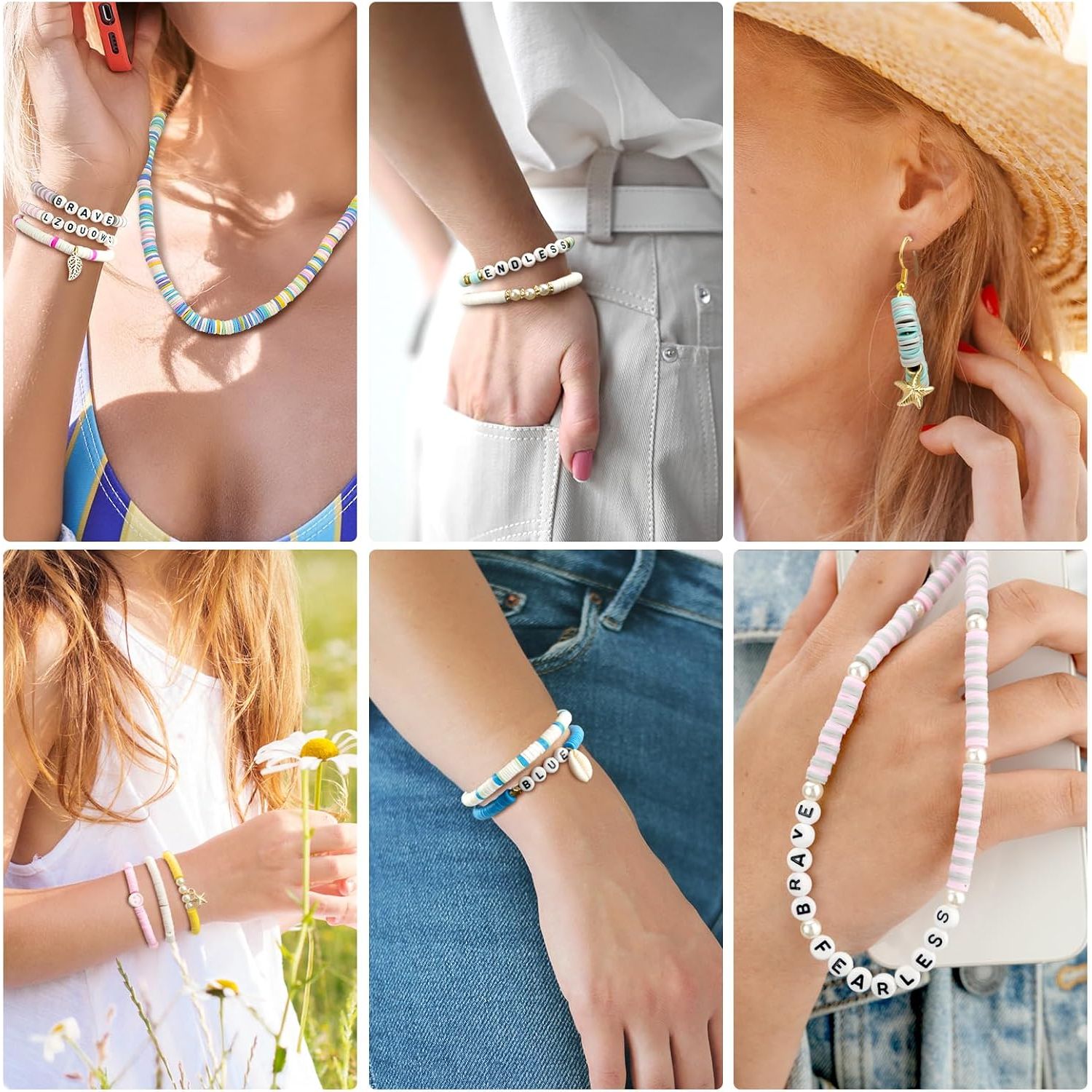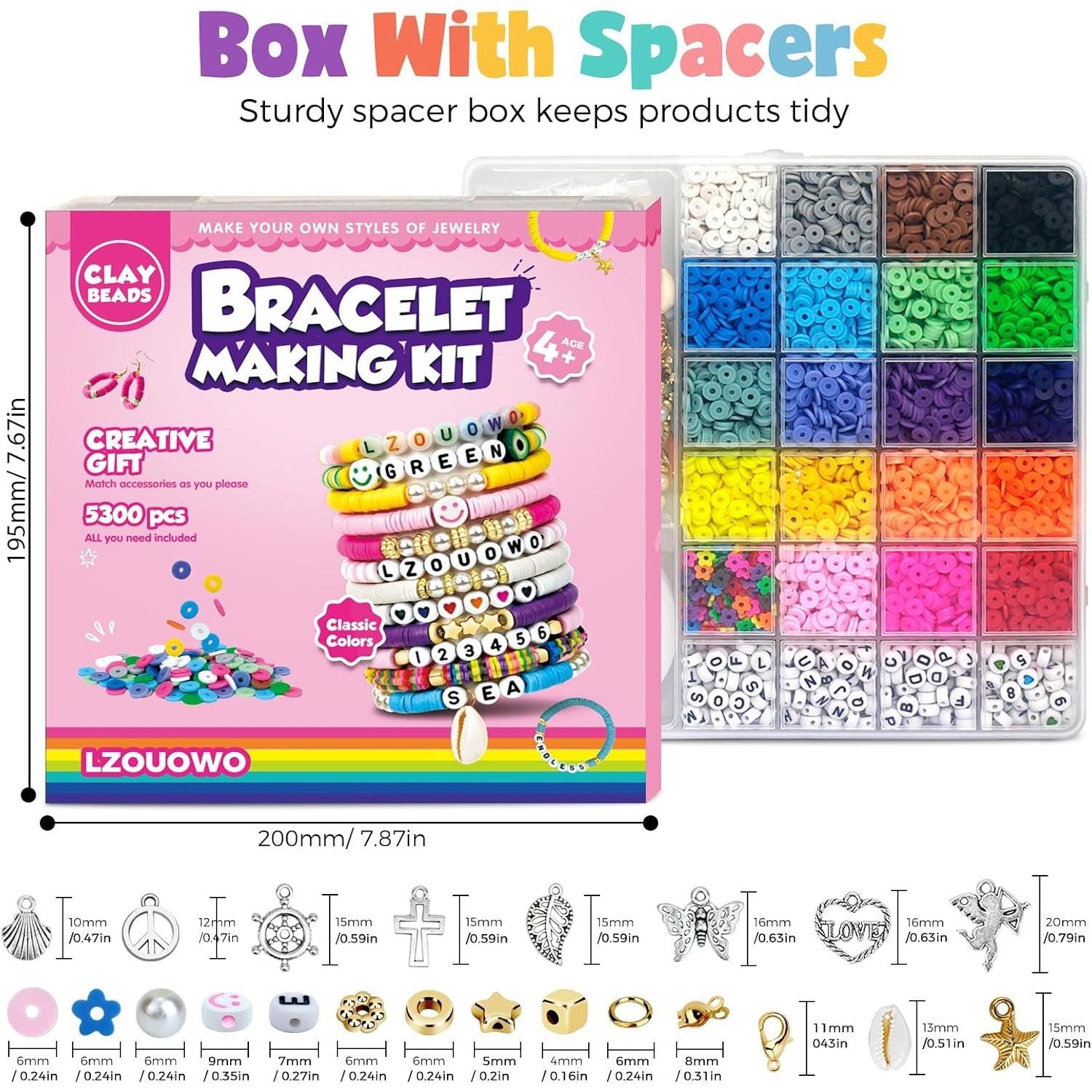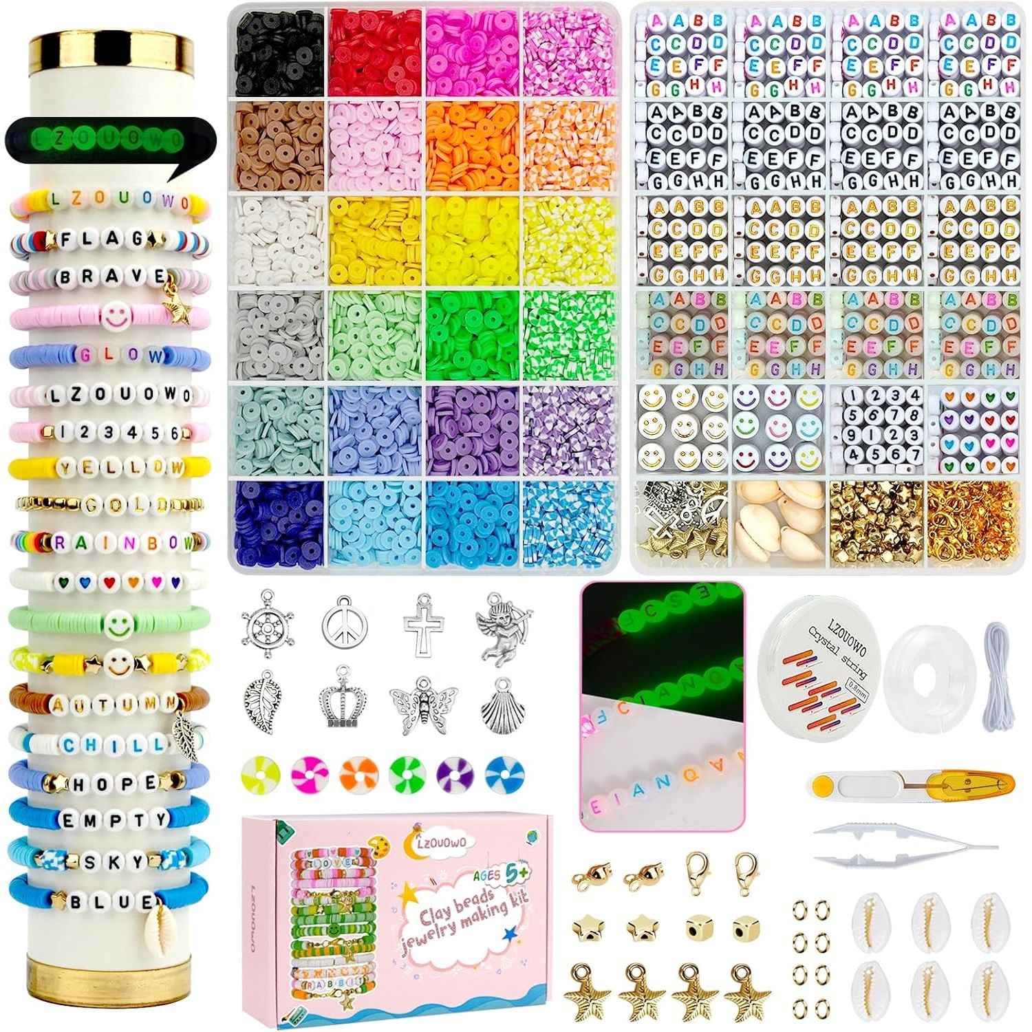 - LZOUOWO 5300 Clay Beads Bracelet Making Aesthetic Kit, Polymer Heishi Preppy Letter Beads for Friendship Bracelet, Pearl Disc Beads Charms for Jewelry Making, DIY Creative Gift for Girls 8-12 Teens